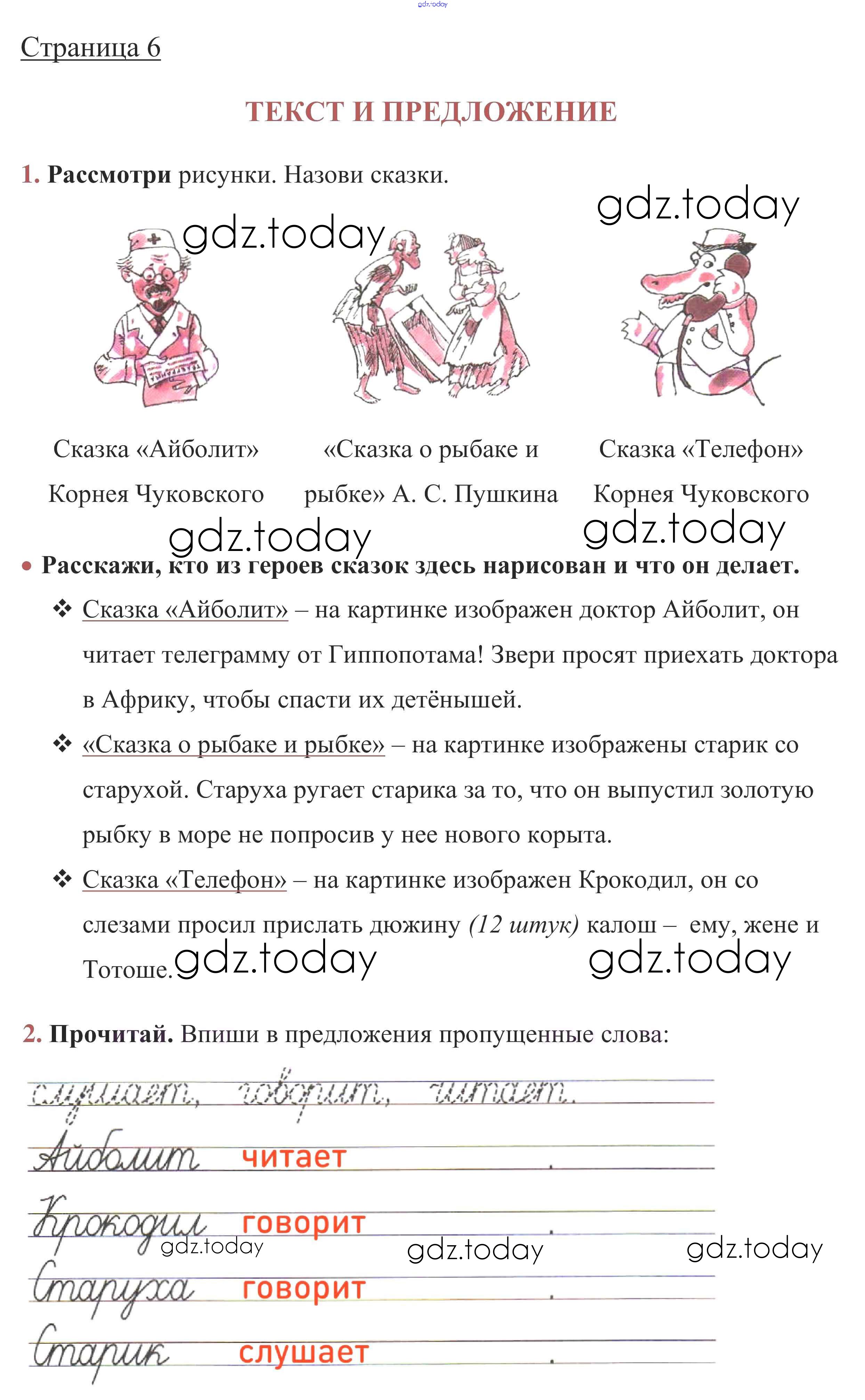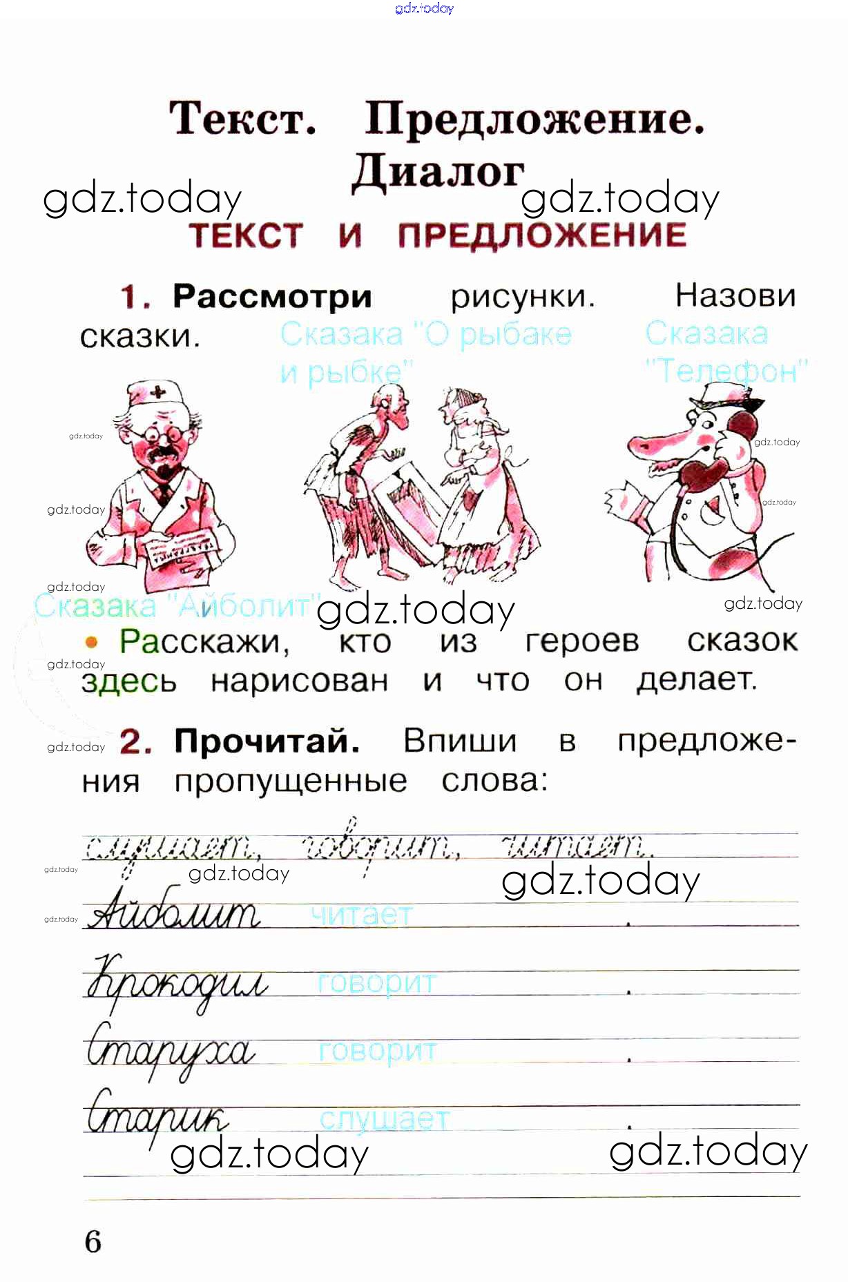 Ответы к Решение. Глава 2. Текст, предложение, диалог  стр. 6 Рабочей тетради по Русскому языку для 1 класса Канакина, Горецкий  Просвещение Школа России 2013