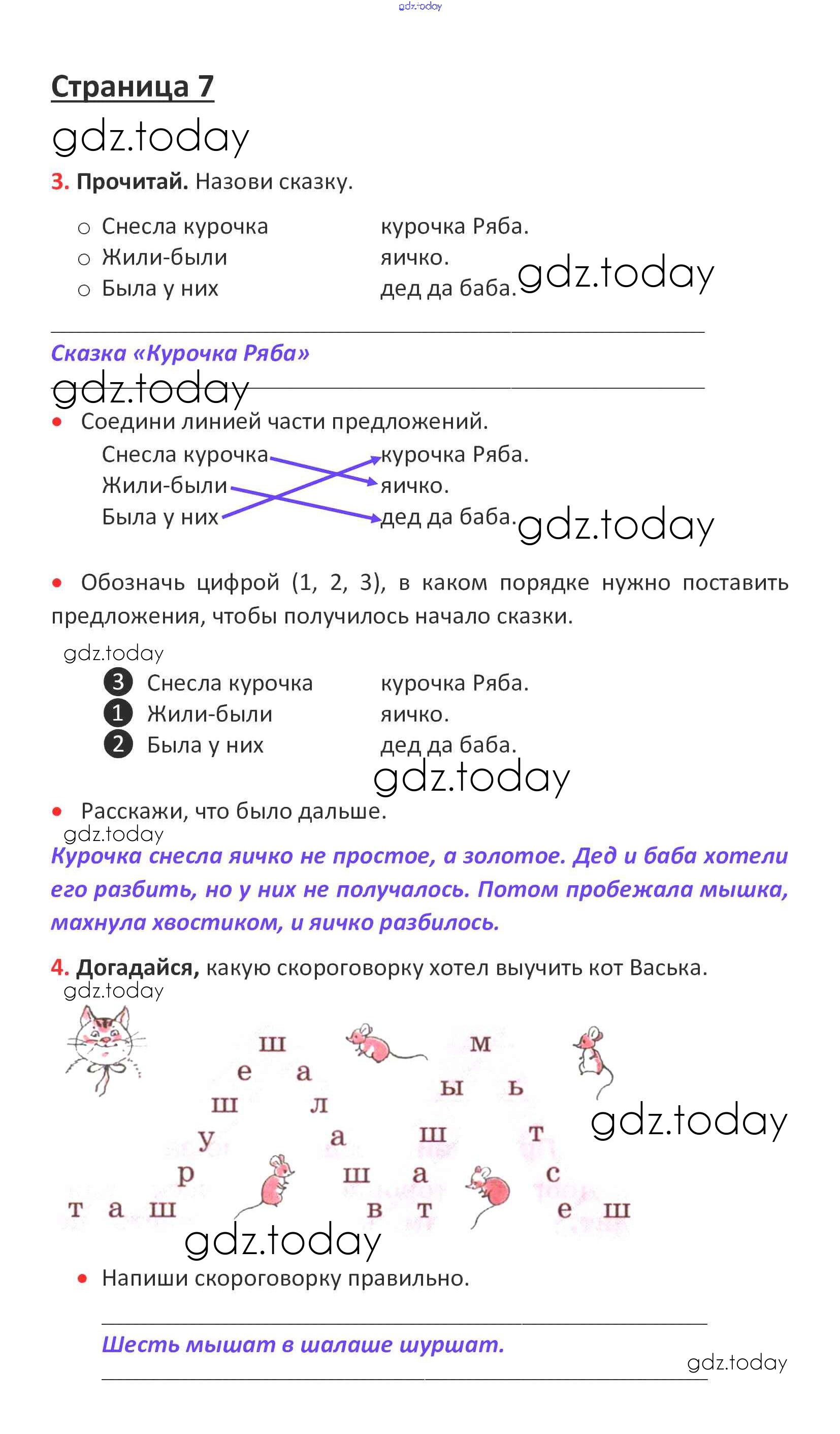 Ответы к Решение. Глава 2. Текст, предложение, диалог  стр. 7 Рабочей тетради по Русскому языку для 1 класса Канакина, Горецкий  Просвещение Школа России 2013