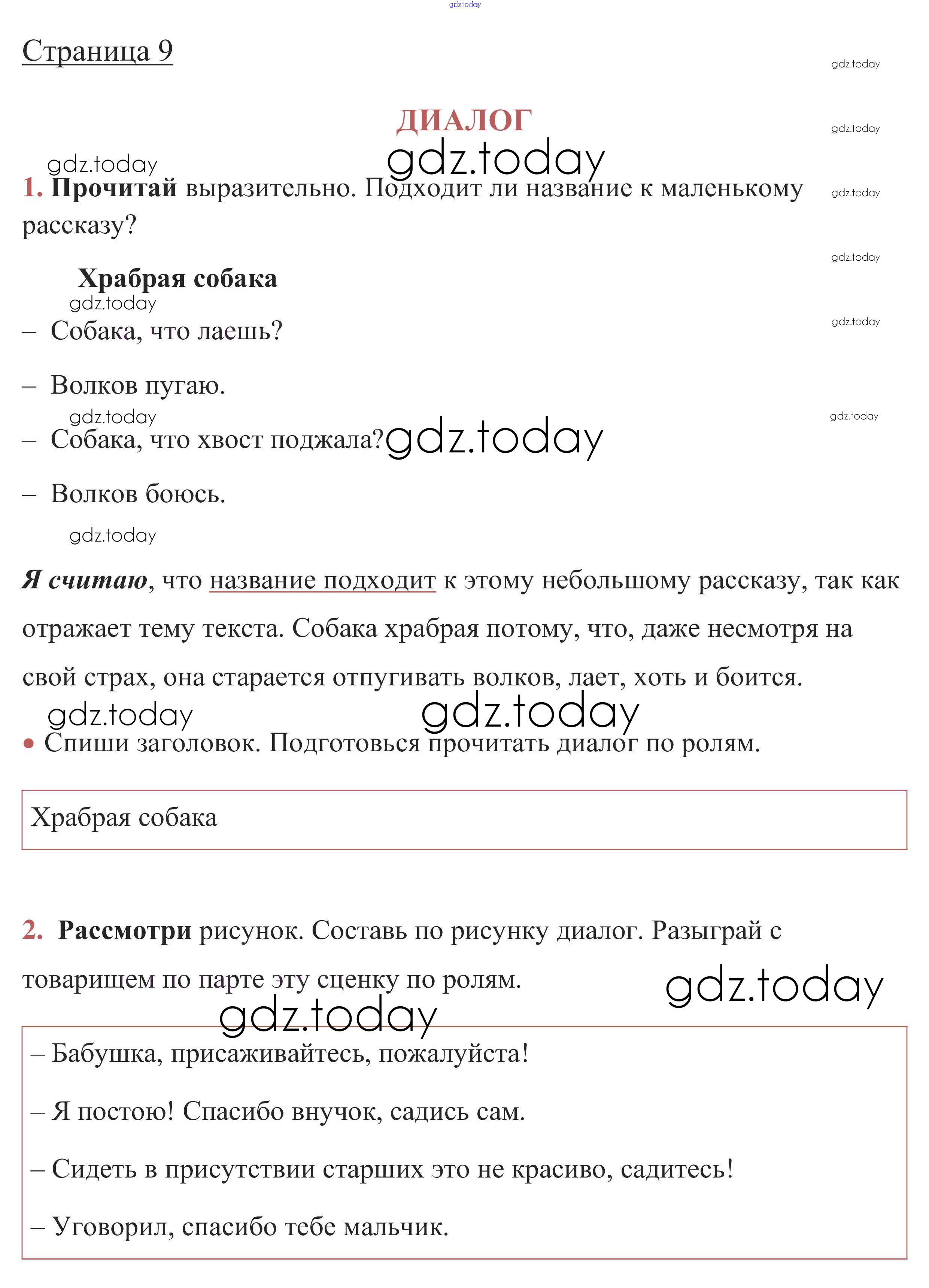 На страницах сайта gdz.today вы найдете учебный и вспомогательный материал, направленный на улучшения знаний школьной программы. ГДЗ - онлайн мир знаний Решение. Глава 2. Текст, предложение, диалог  стр. 9 Рабочей тетради по Русскому языку для 1 класса Канакина, Горецкий  Просвещение Школа России 2013