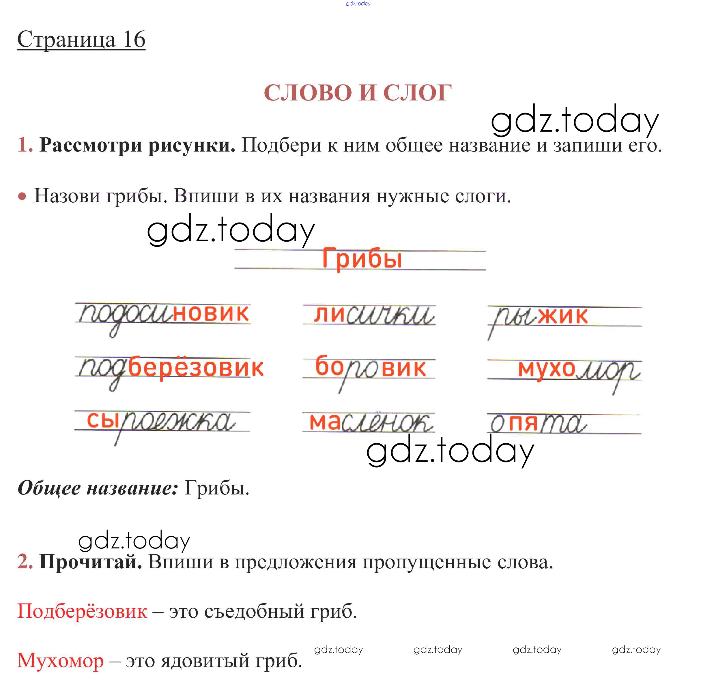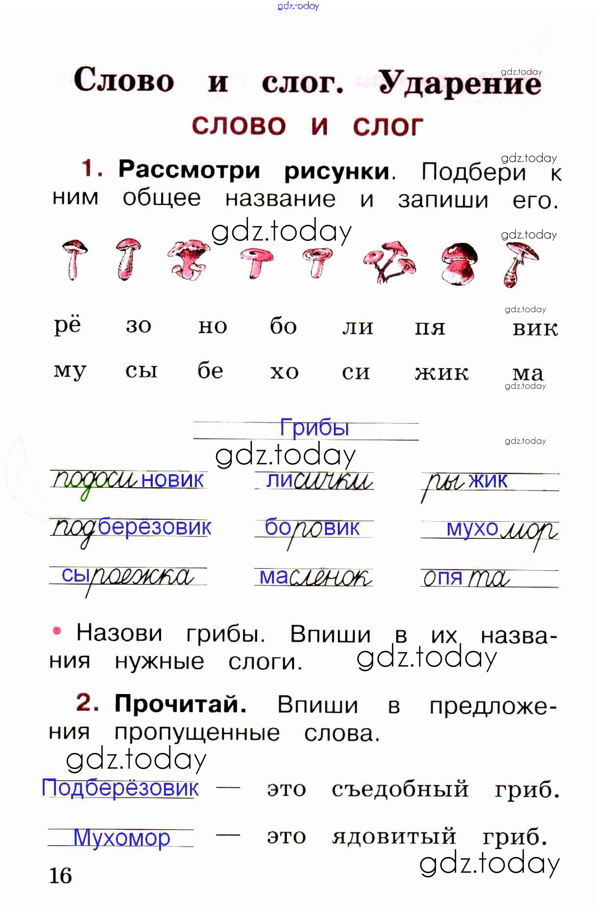 На страницах сайта gdz.today вы найдете учебный и вспомогательный материал, направленный на улучшения знаний школьной программы. ГДЗ - онлайн мир знаний Решение. Глава 4. Слово и слог. Ударение  стр. 16 Рабочей тетради по Русскому языку для 1 класса Канакина, Горецкий  Просвещение Школа России 2013