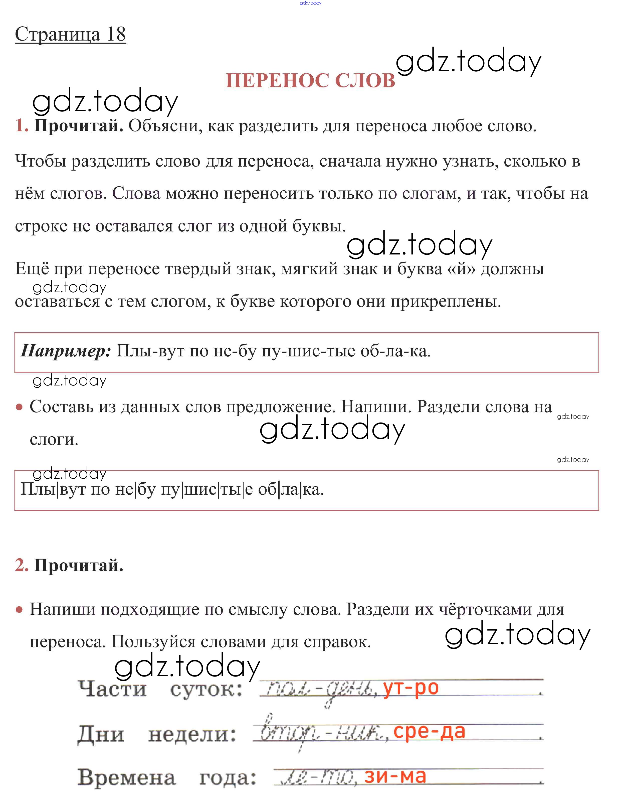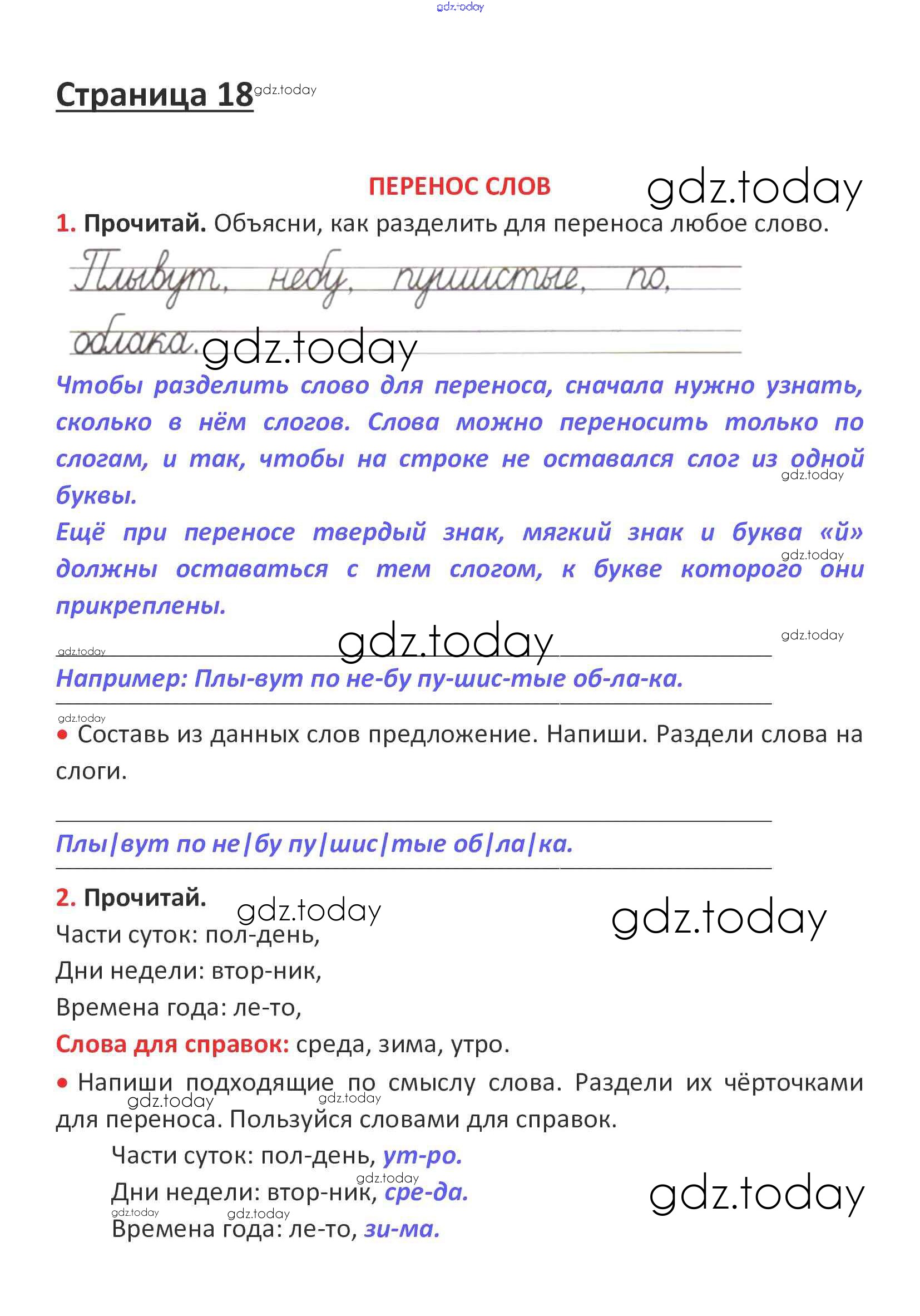 На страницах сайта gdz.today вы найдете учебный и вспомогательный материал, направленный на улучшения знаний школьной программы. ГДЗ - онлайн мир знаний Решение. Глава 4. Слово и слог. Ударение  стр. 18 Рабочей тетради по Русскому языку для 1 класса Канакина, Горецкий  Просвещение Школа России 2013
