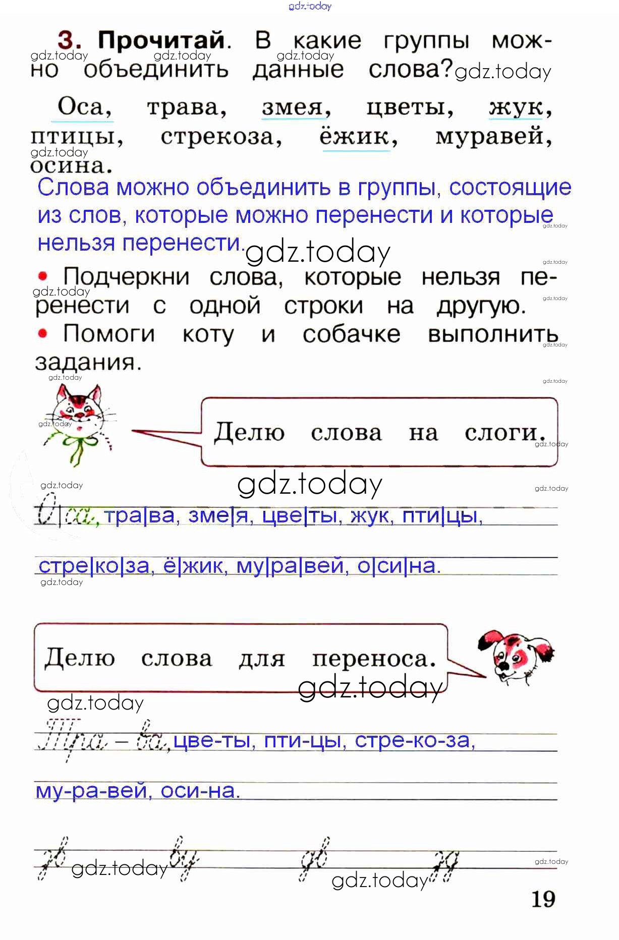 На страницах сайта gdz.today вы найдете учебный и вспомогательный материал, направленный на улучшения знаний школьной программы. ГДЗ - онлайн мир знаний Решение. Глава 4. Слово и слог. Ударение  стр. 19 Рабочей тетради по Русскому языку для 1 класса Канакина, Горецкий  Просвещение Школа России 2013