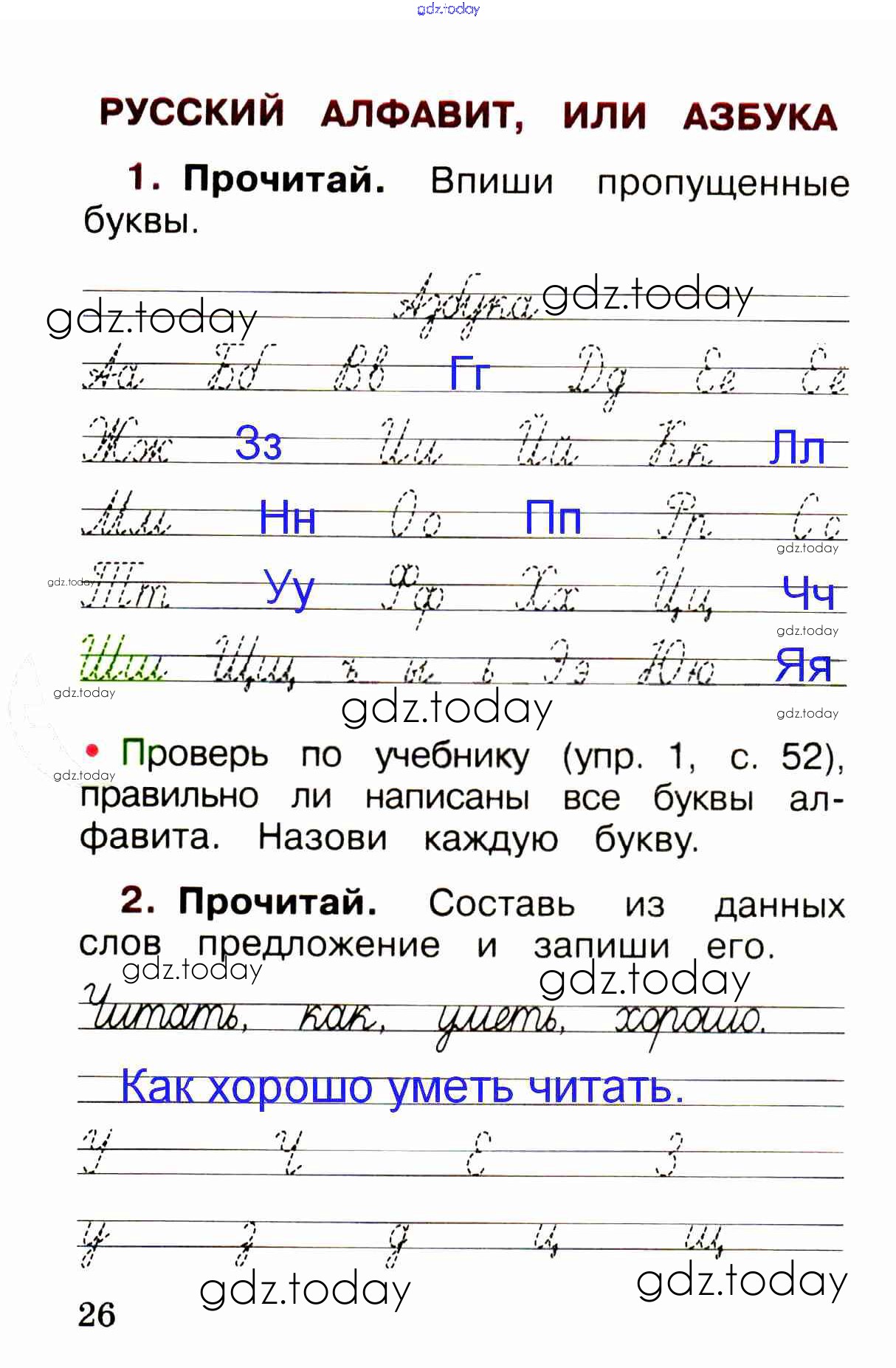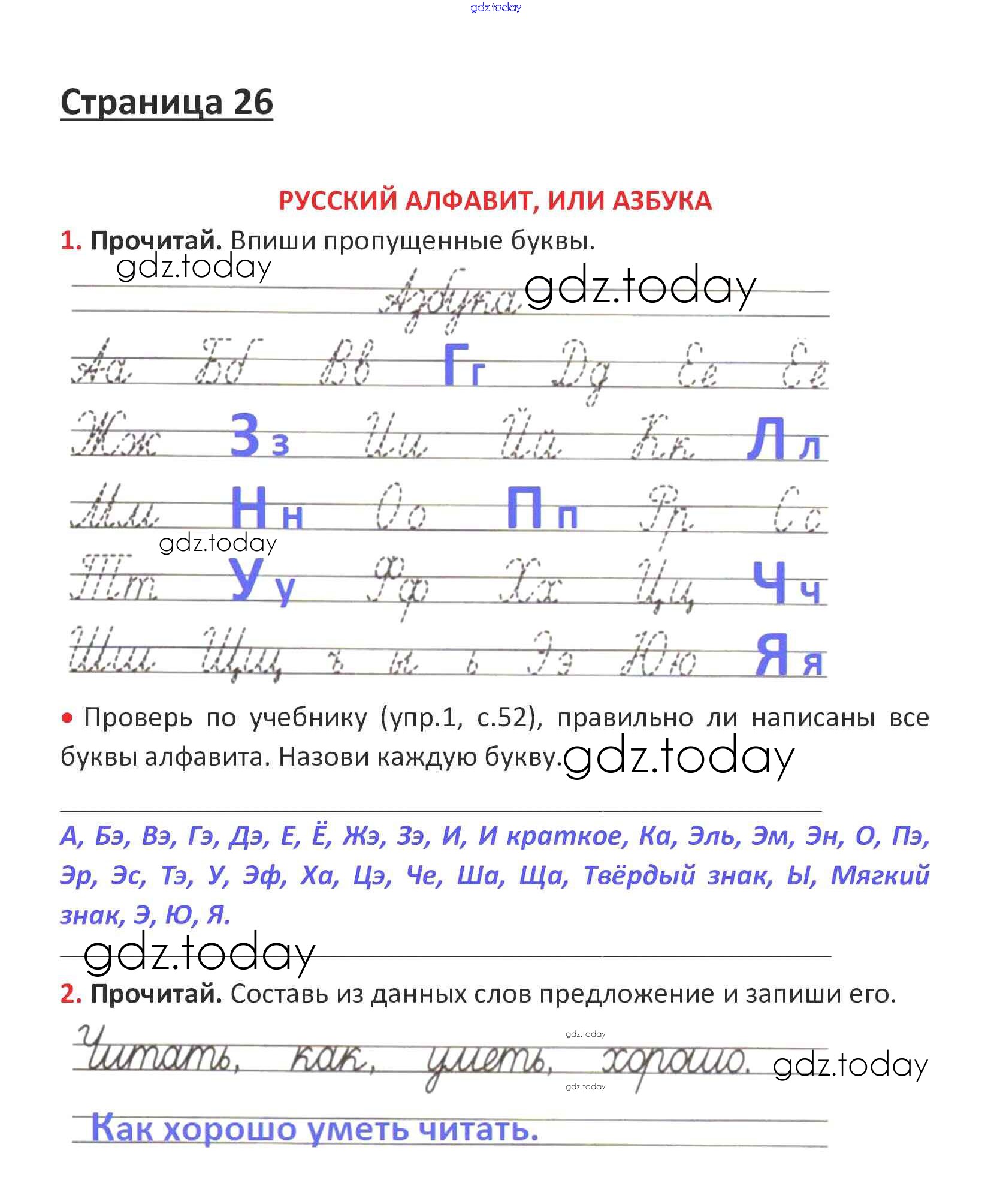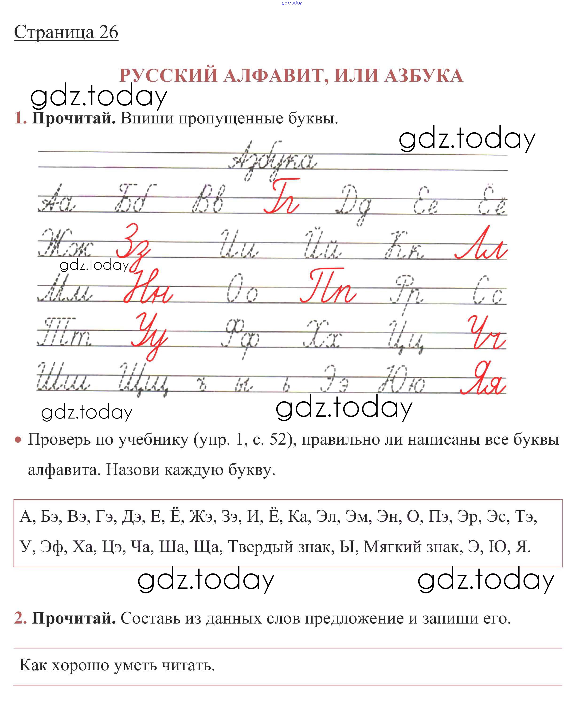 На страницах сайта gdz.today вы найдете учебный и вспомогательный материал, направленный на улучшения знаний школьной программы. ГДЗ - онлайн мир знаний Решение. Глава 5. Звуки и буквы  стр. 26 Рабочей тетради по Русскому языку для 1 класса Канакина, Горецкий  Просвещение Школа России 2013
