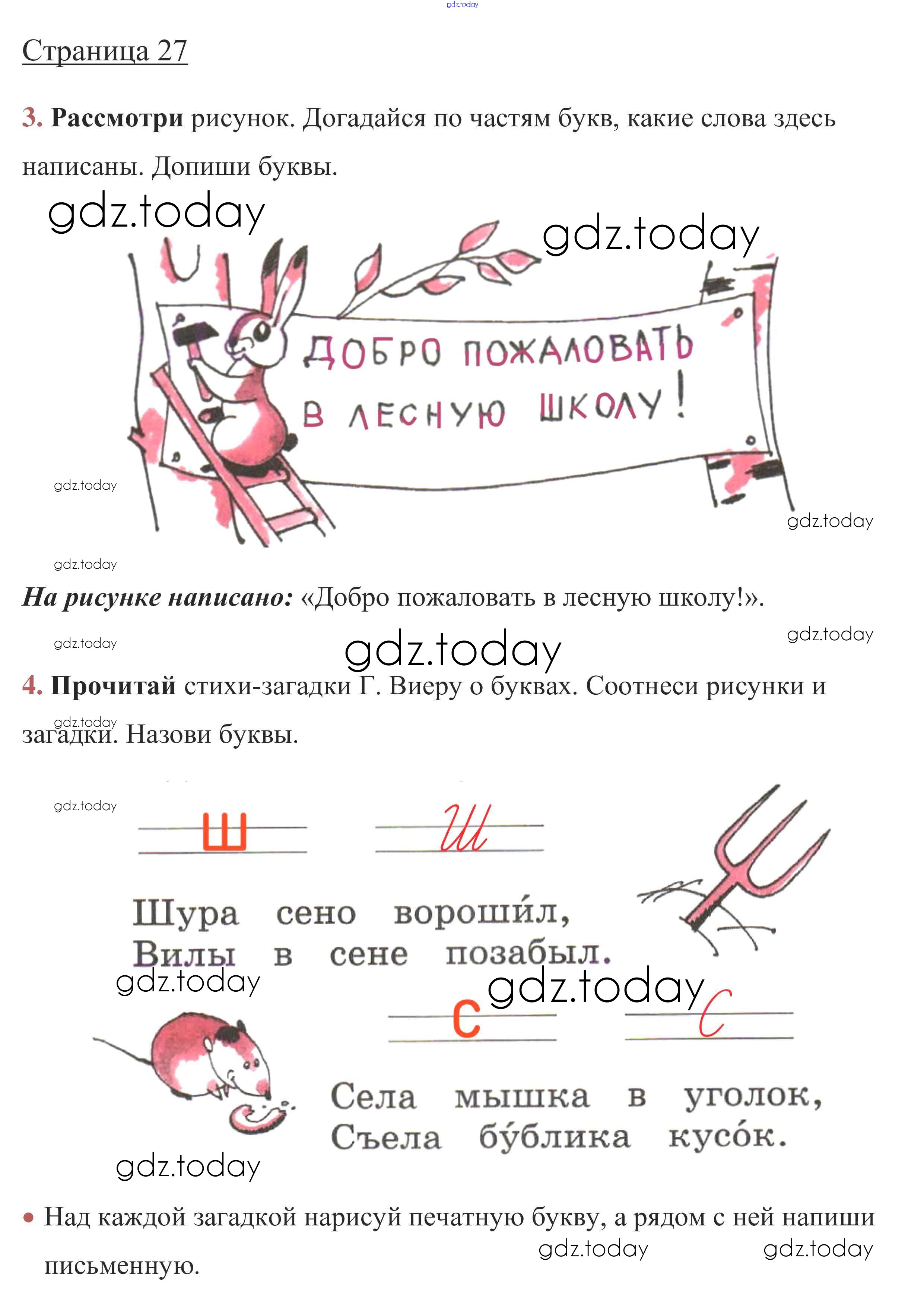 Ответы к Решение. Глава 5. Звуки и буквы  стр. 27 Рабочей тетради по Русскому языку для 1 класса Канакина, Горецкий  Просвещение Школа России 2013