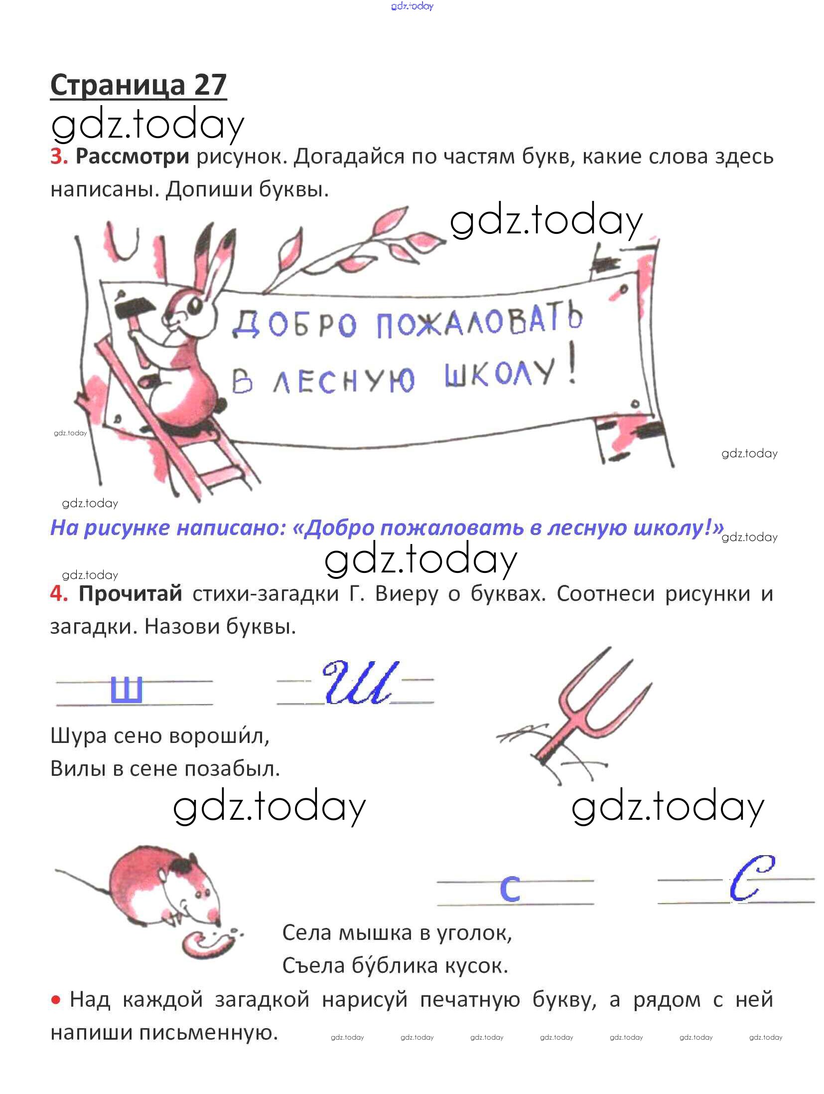 На страницах сайта gdz.today вы найдете учебный и вспомогательный материал, направленный на улучшения знаний школьной программы. ГДЗ - онлайн мир знаний Решение. Глава 5. Звуки и буквы  стр. 27 Рабочей тетради по Русскому языку для 1 класса Канакина, Горецкий  Просвещение Школа России 2013