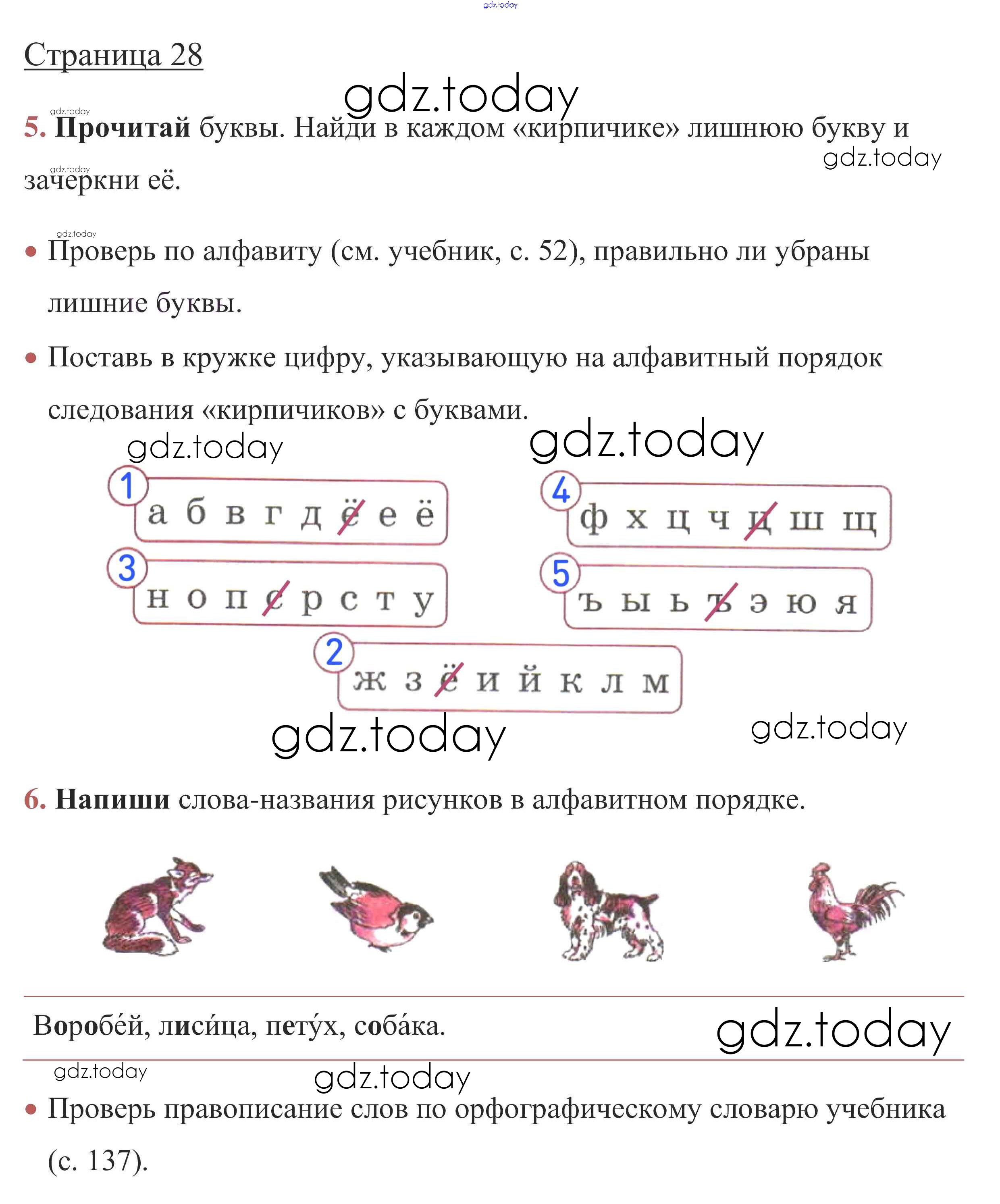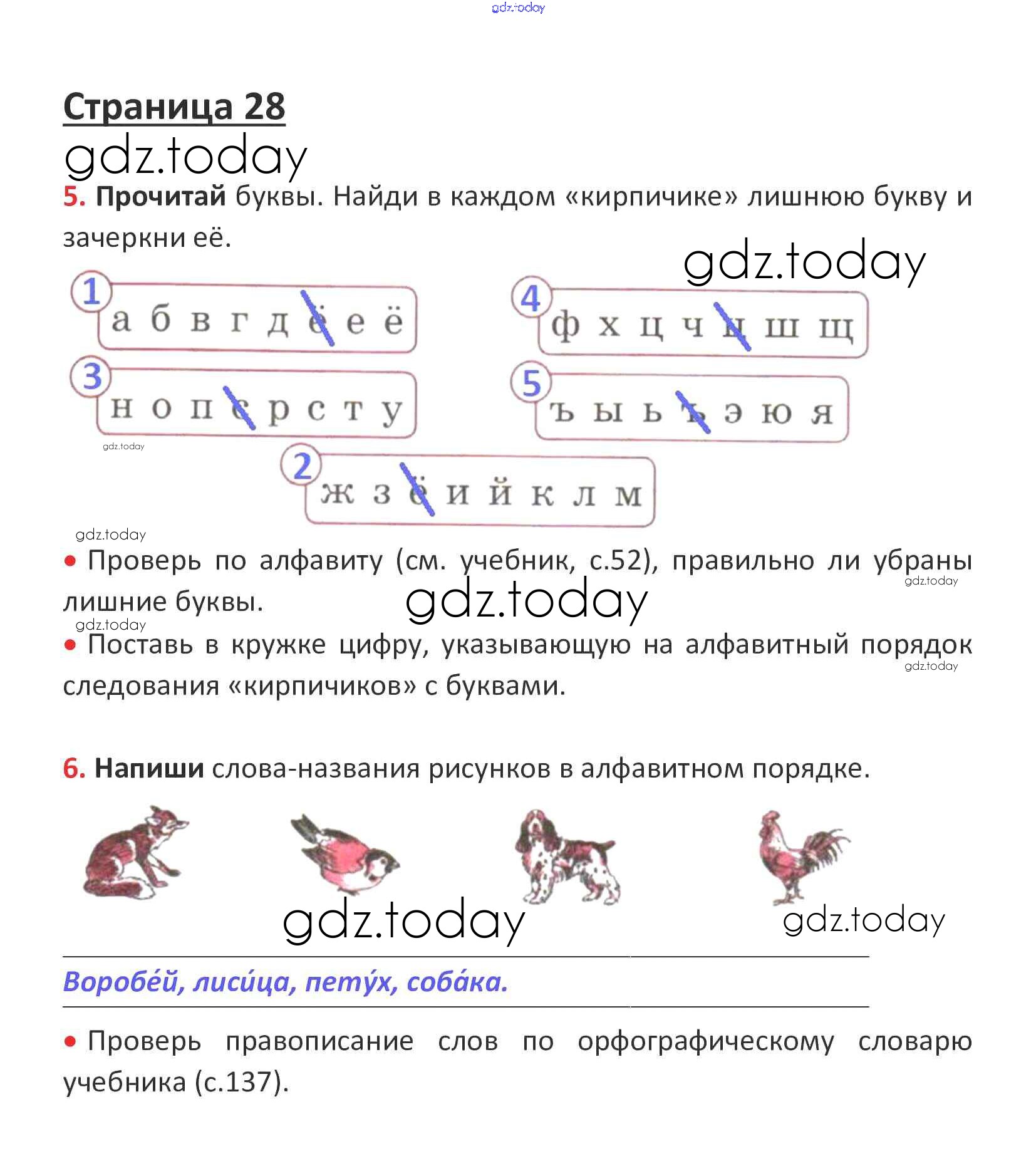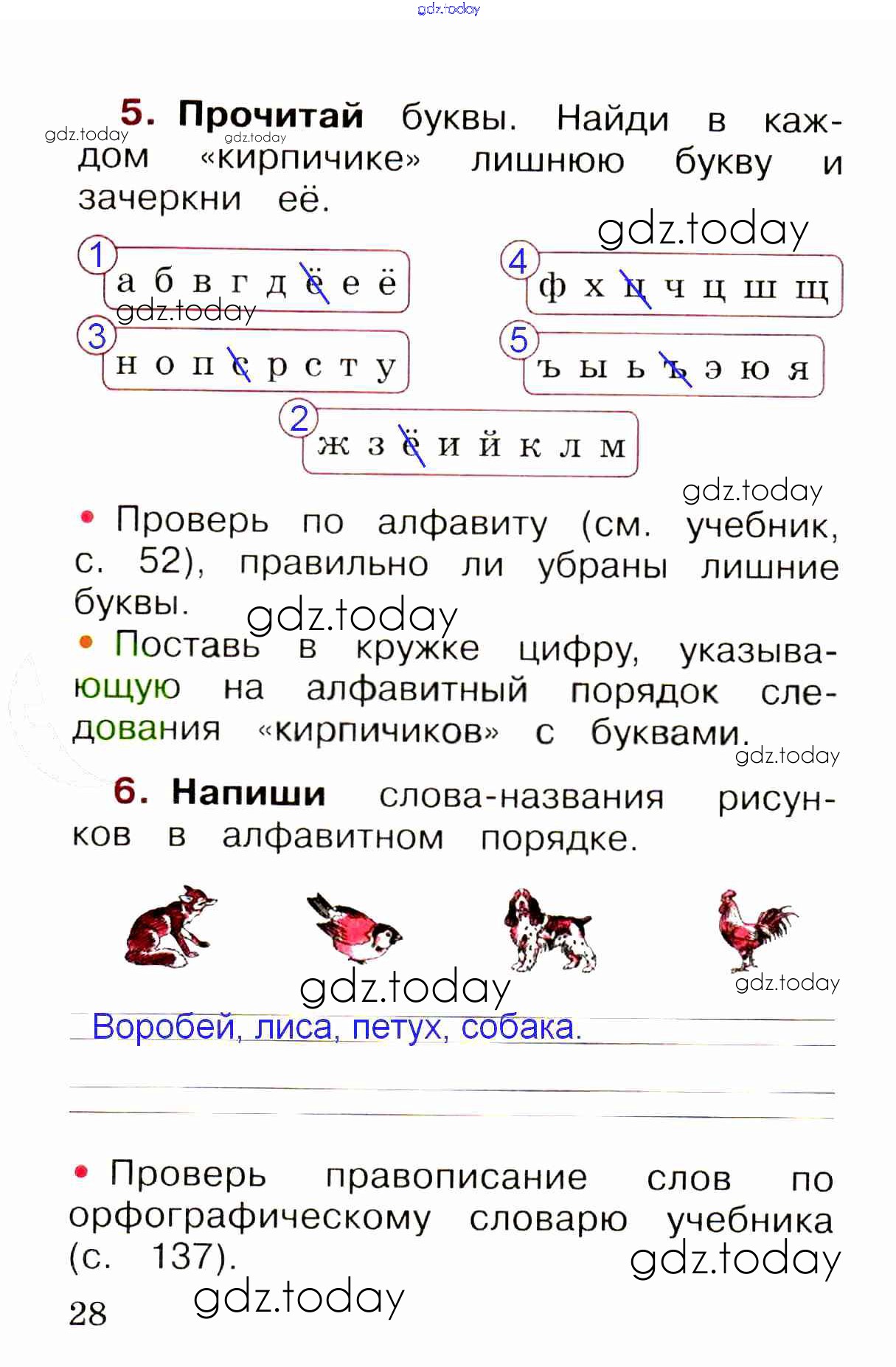 На страницах сайта gdz.today вы найдете учебный и вспомогательный материал, направленный на улучшения знаний школьной программы. ГДЗ - онлайн мир знаний Решение. Глава 5. Звуки и буквы  стр. 28 Рабочей тетради по Русскому языку для 1 класса Канакина, Горецкий  Просвещение Школа России 2013