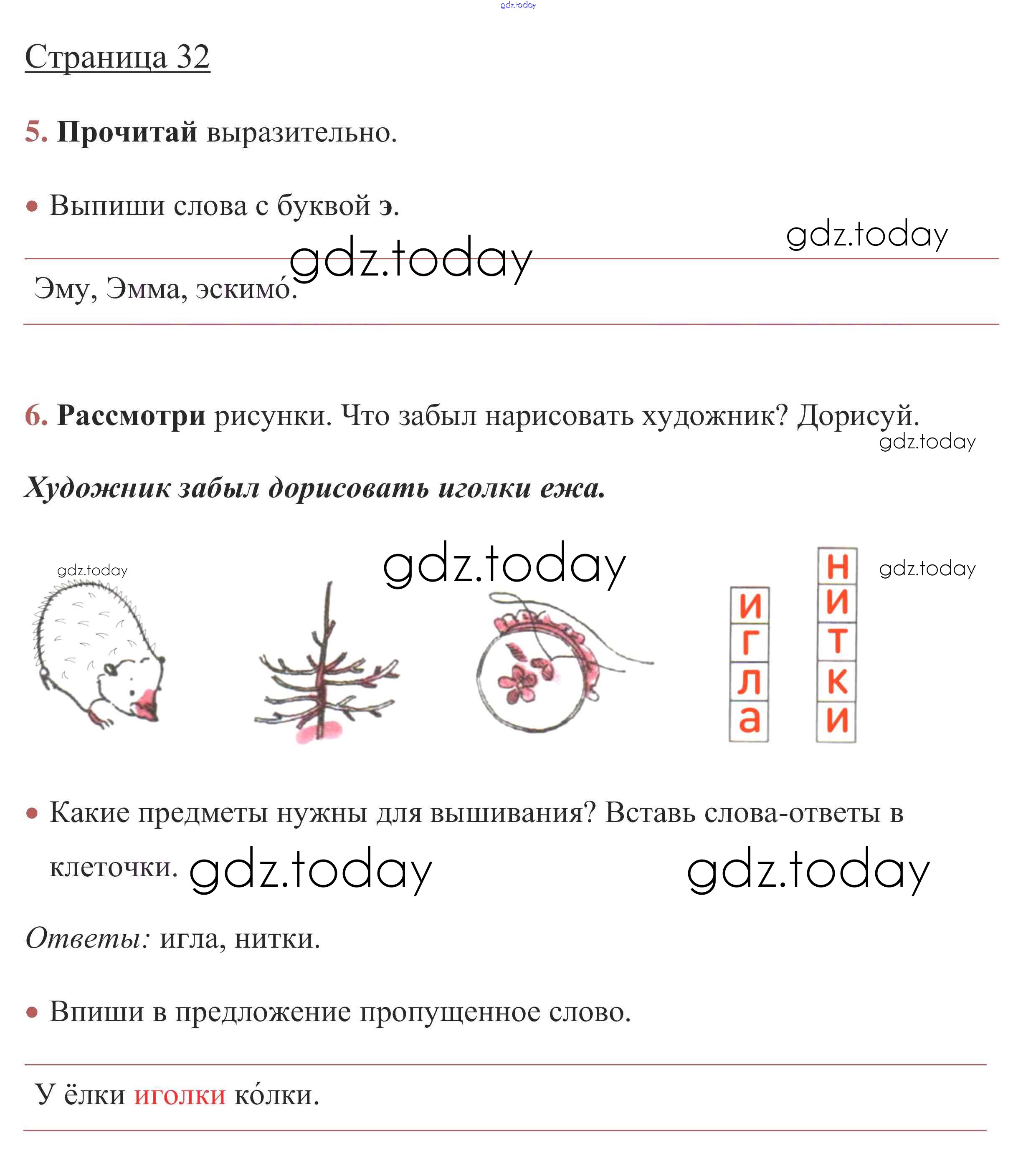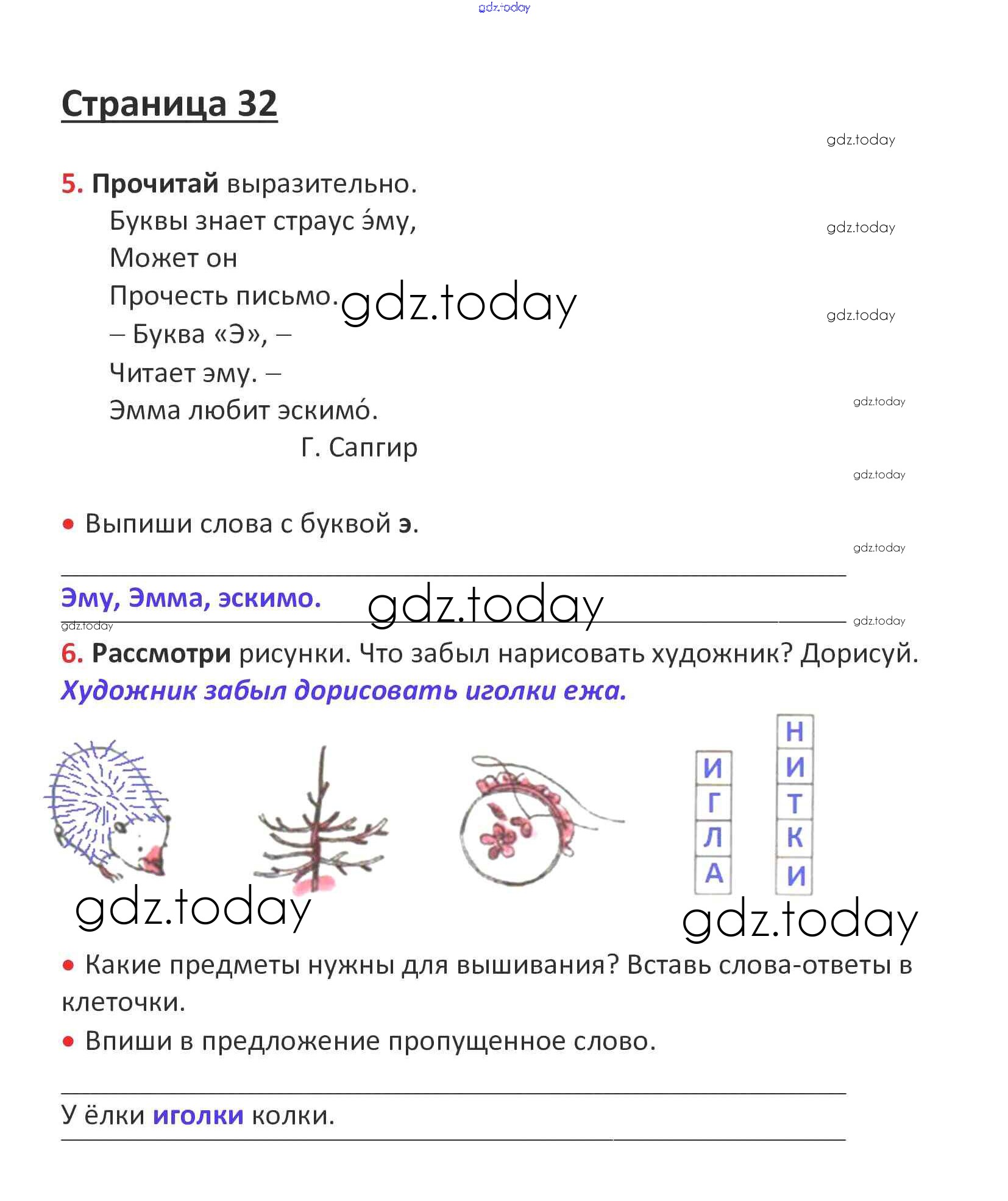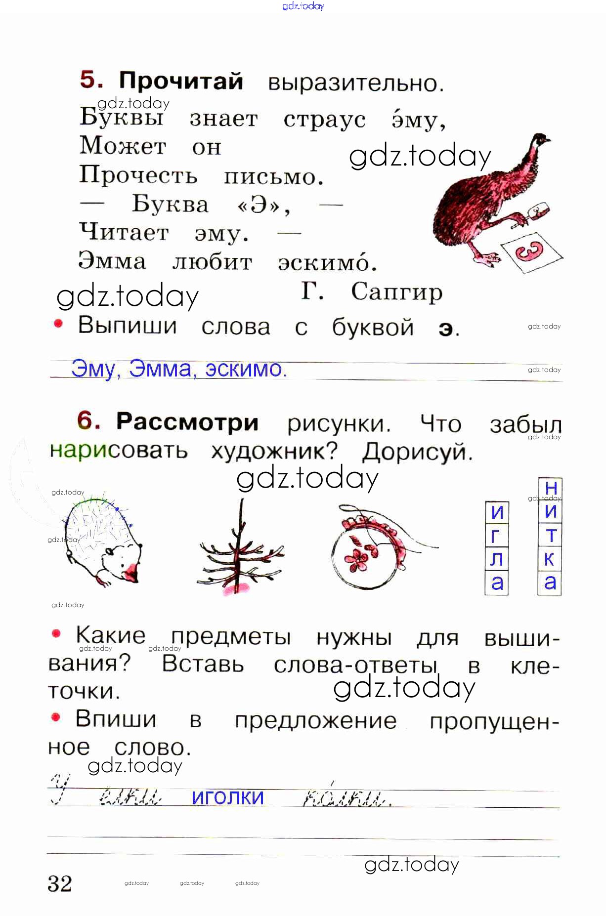 На страницах сайта gdz.today вы найдете учебный и вспомогательный материал, направленный на улучшения знаний школьной программы. ГДЗ - онлайн мир знаний Решение. Глава 5. Звуки и буквы  стр. 32 Рабочей тетради по Русскому языку для 1 класса Канакина, Горецкий  Просвещение Школа России 2013
