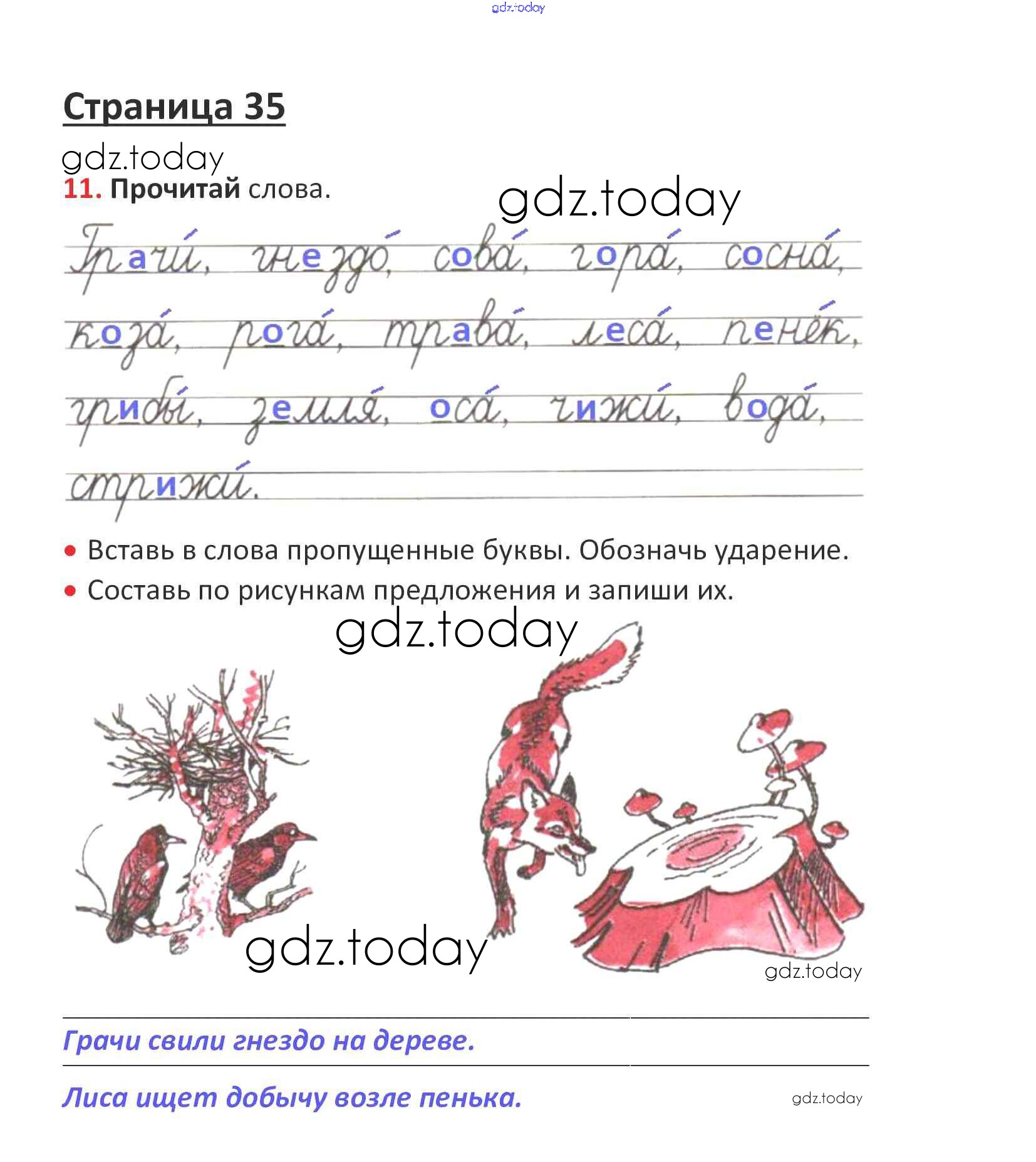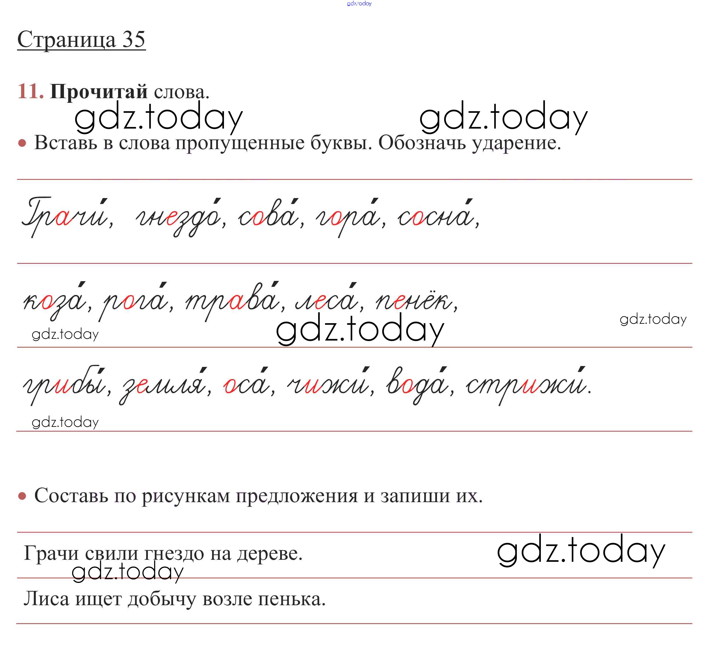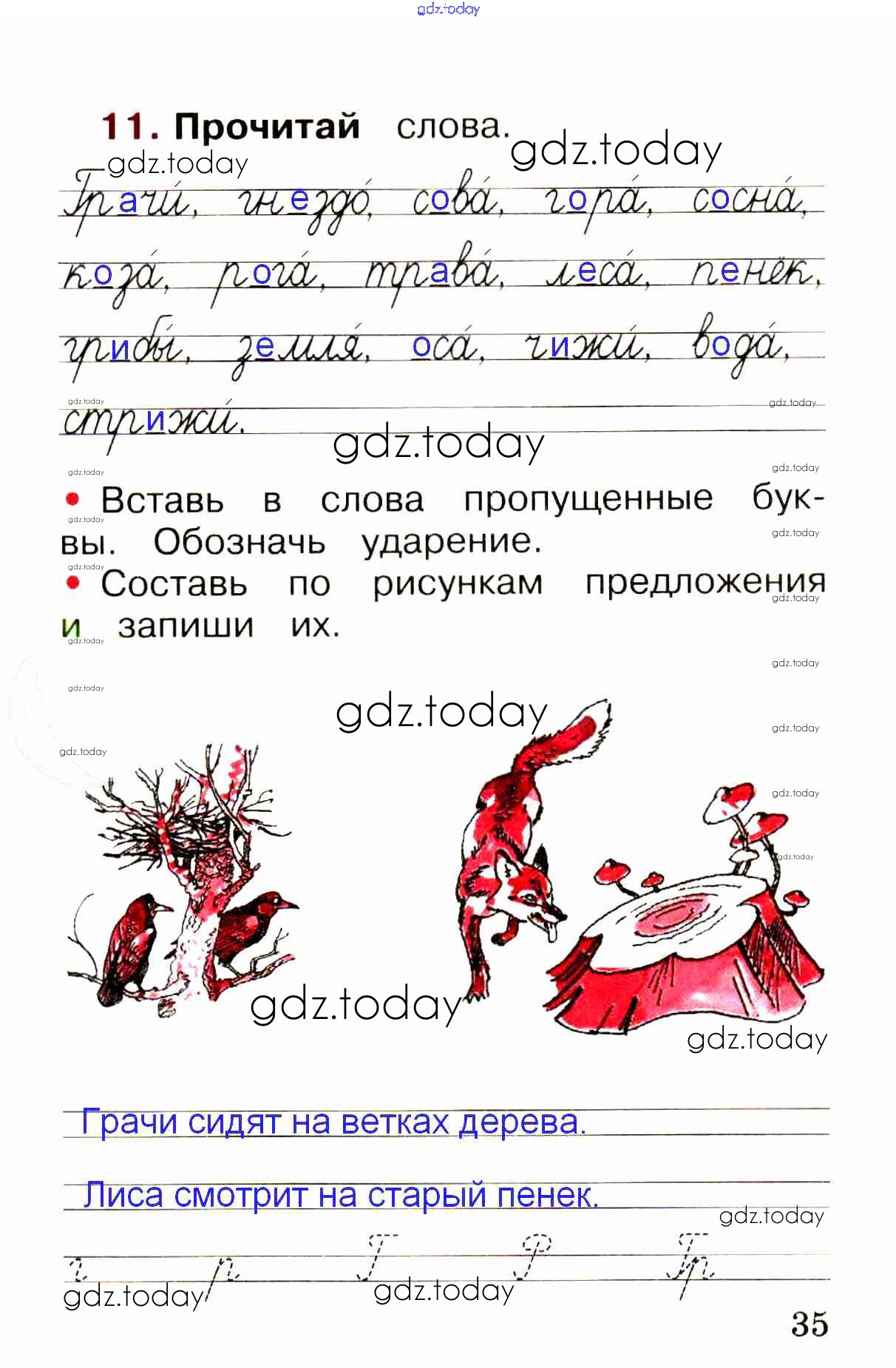 На страницах сайта gdz.today вы найдете учебный и вспомогательный материал, направленный на улучшения знаний школьной программы. ГДЗ - онлайн мир знаний Решение. Глава 5. Звуки и буквы  стр. 35 Рабочей тетради по Русскому языку для 1 класса Канакина, Горецкий  Просвещение Школа России 2013