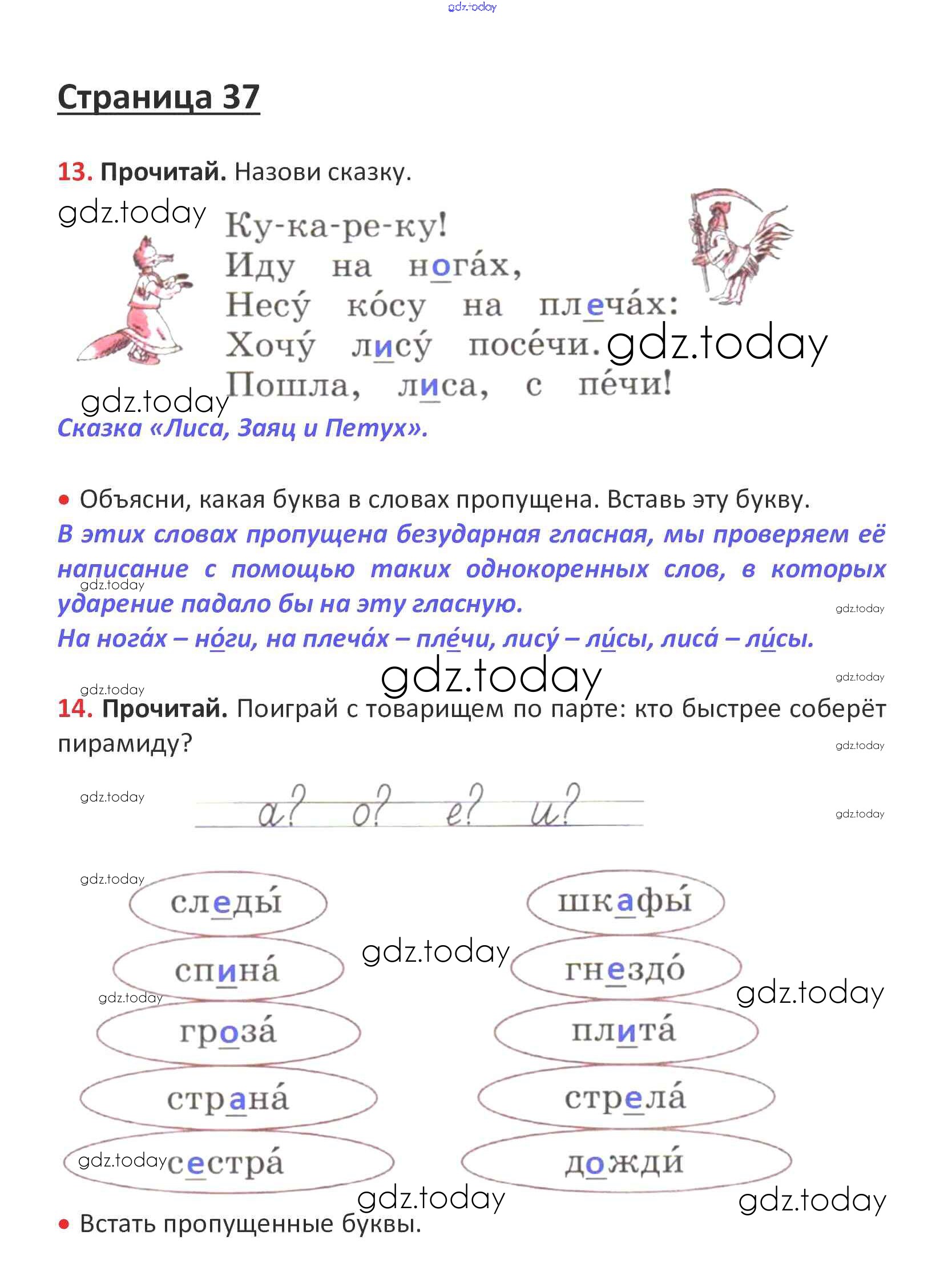 Ответы к Решение. Глава 5. Звуки и буквы  стр. 37 Рабочей тетради по Русскому языку для 1 класса Канакина, Горецкий  Просвещение Школа России 2013