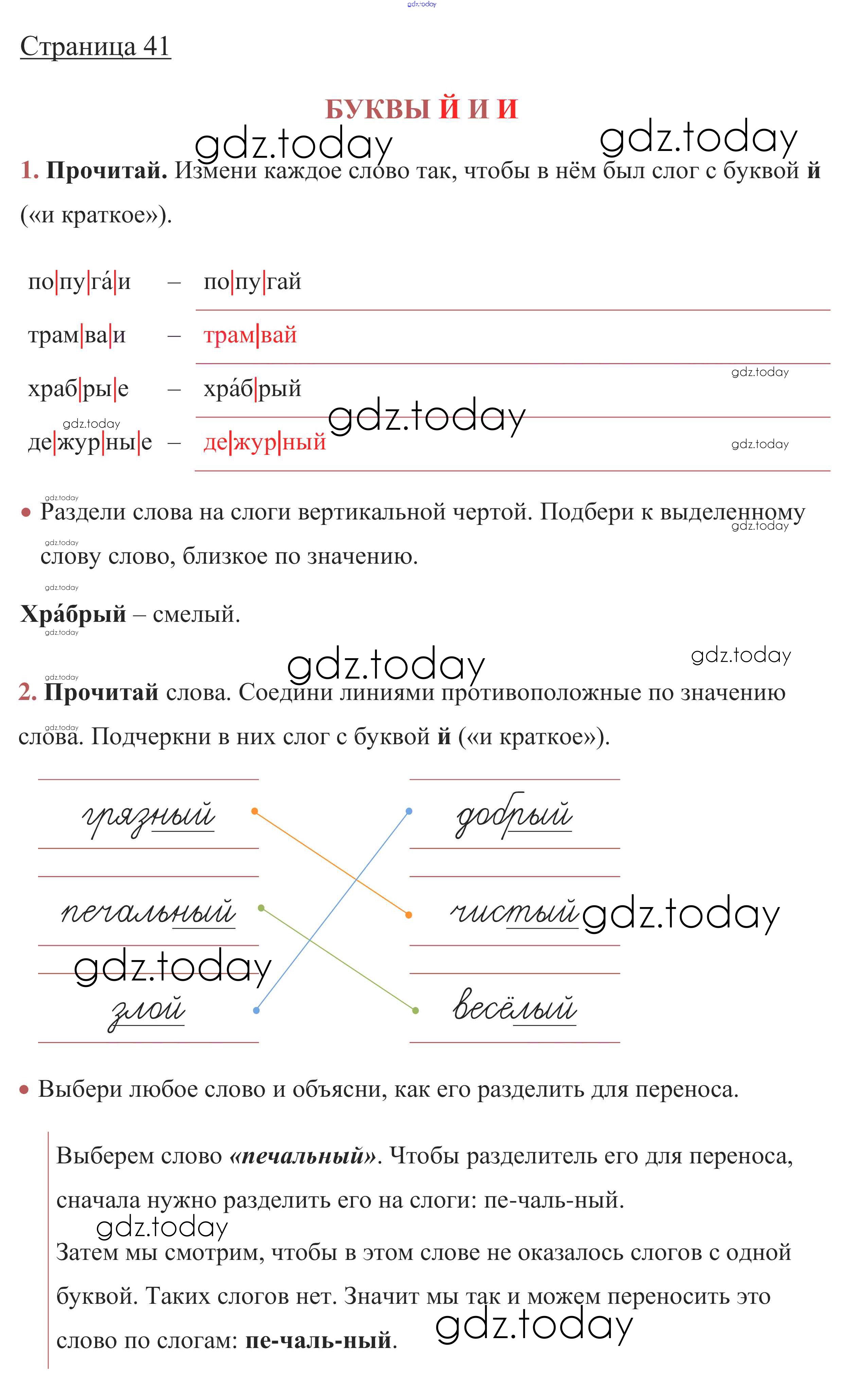 Ответы к Решение. Глава 5. Звуки и буквы  стр. 41 Рабочей тетради по Русскому языку для 1 класса Канакина, Горецкий  Просвещение Школа России 2013