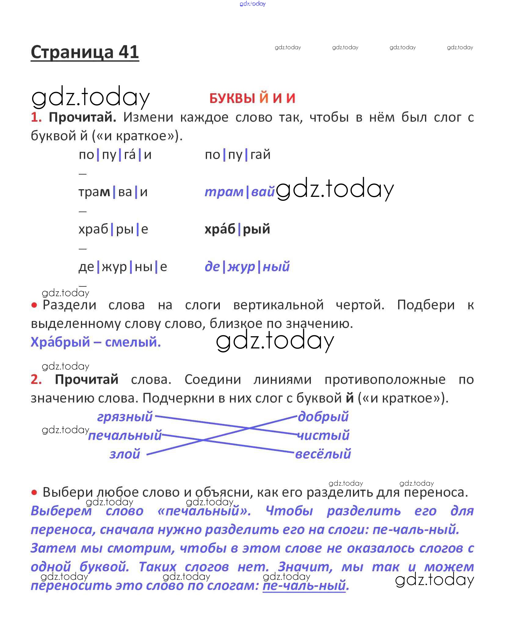 На страницах сайта gdz.today вы найдете учебный и вспомогательный материал, направленный на улучшения знаний школьной программы. ГДЗ - онлайн мир знаний Решение. Глава 5. Звуки и буквы  стр. 41 Рабочей тетради по Русскому языку для 1 класса Канакина, Горецкий  Просвещение Школа России 2013