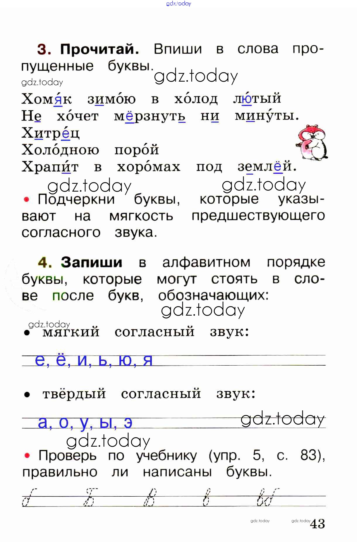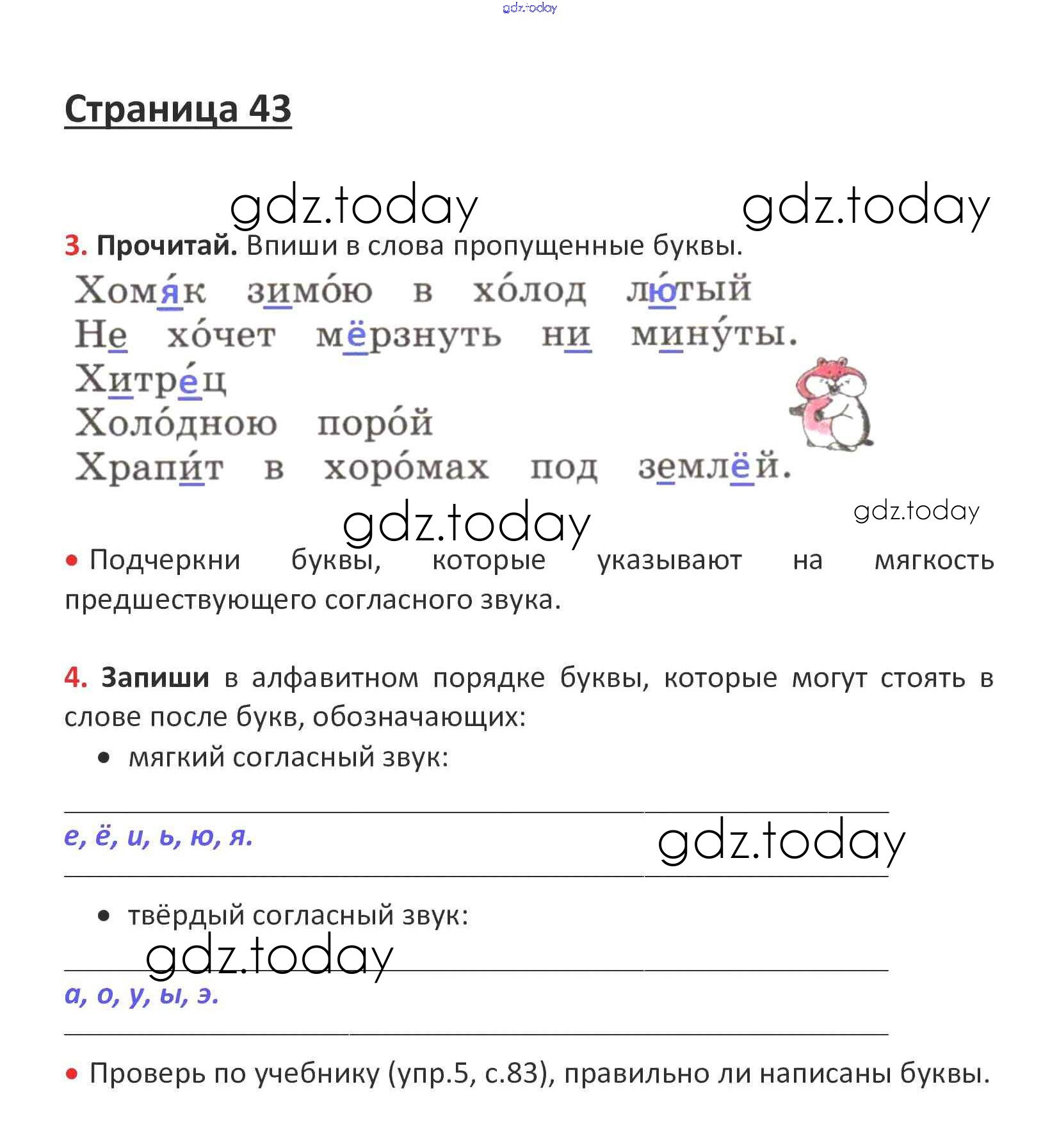 Ответы к Решение. Глава 5. Звуки и буквы  стр. 43 Рабочей тетради по Русскому языку для 1 класса Канакина, Горецкий  Просвещение Школа России 2013
