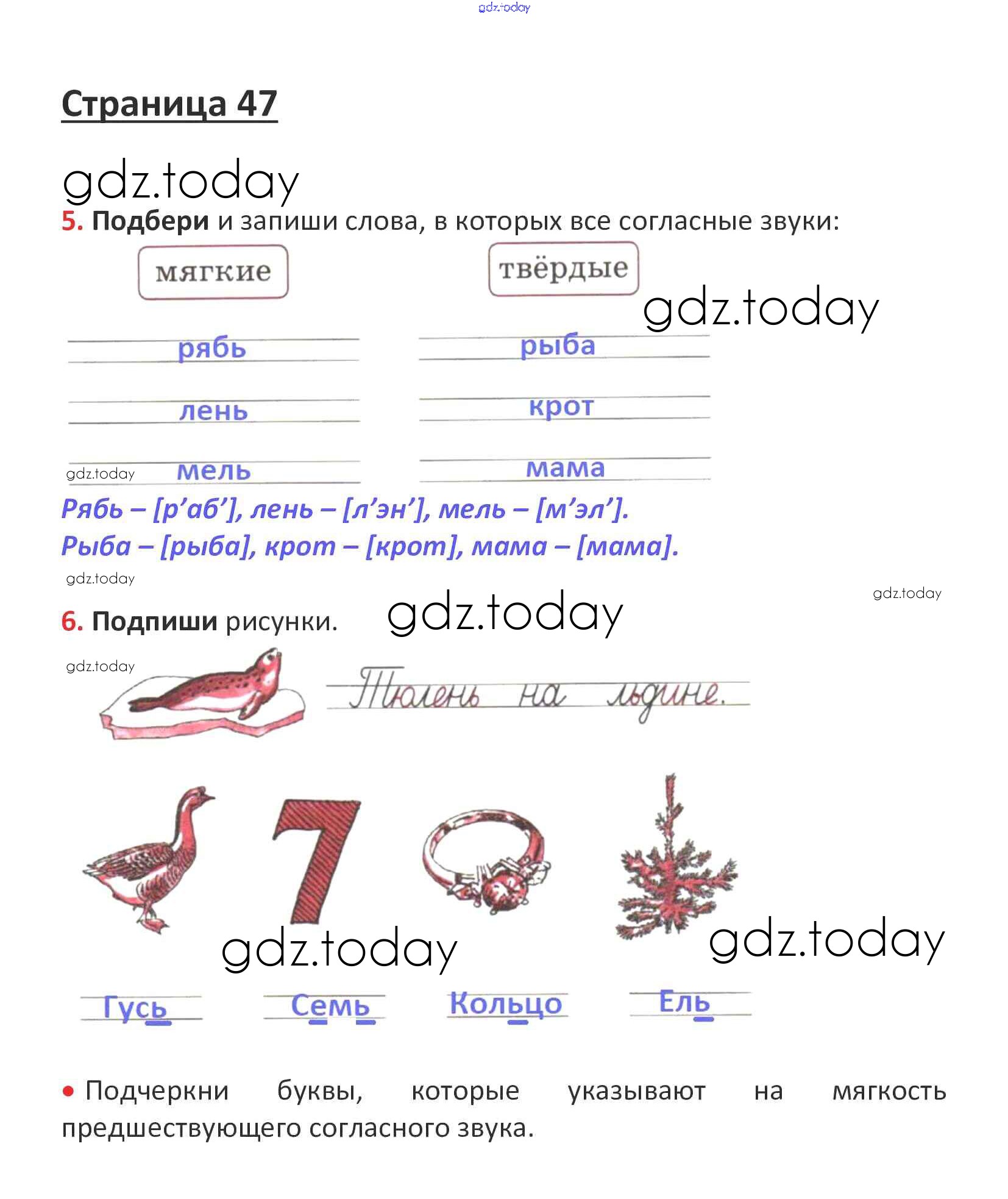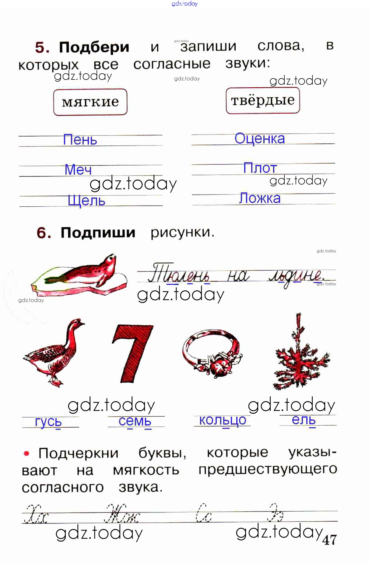На страницах сайта gdz.today вы найдете учебный и вспомогательный материал, направленный на улучшения знаний школьной программы. ГДЗ - онлайн мир знаний Решение. Глава 5. Звуки и буквы  стр. 47 Рабочей тетради по Русскому языку для 1 класса Канакина, Горецкий  Просвещение Школа России 2013