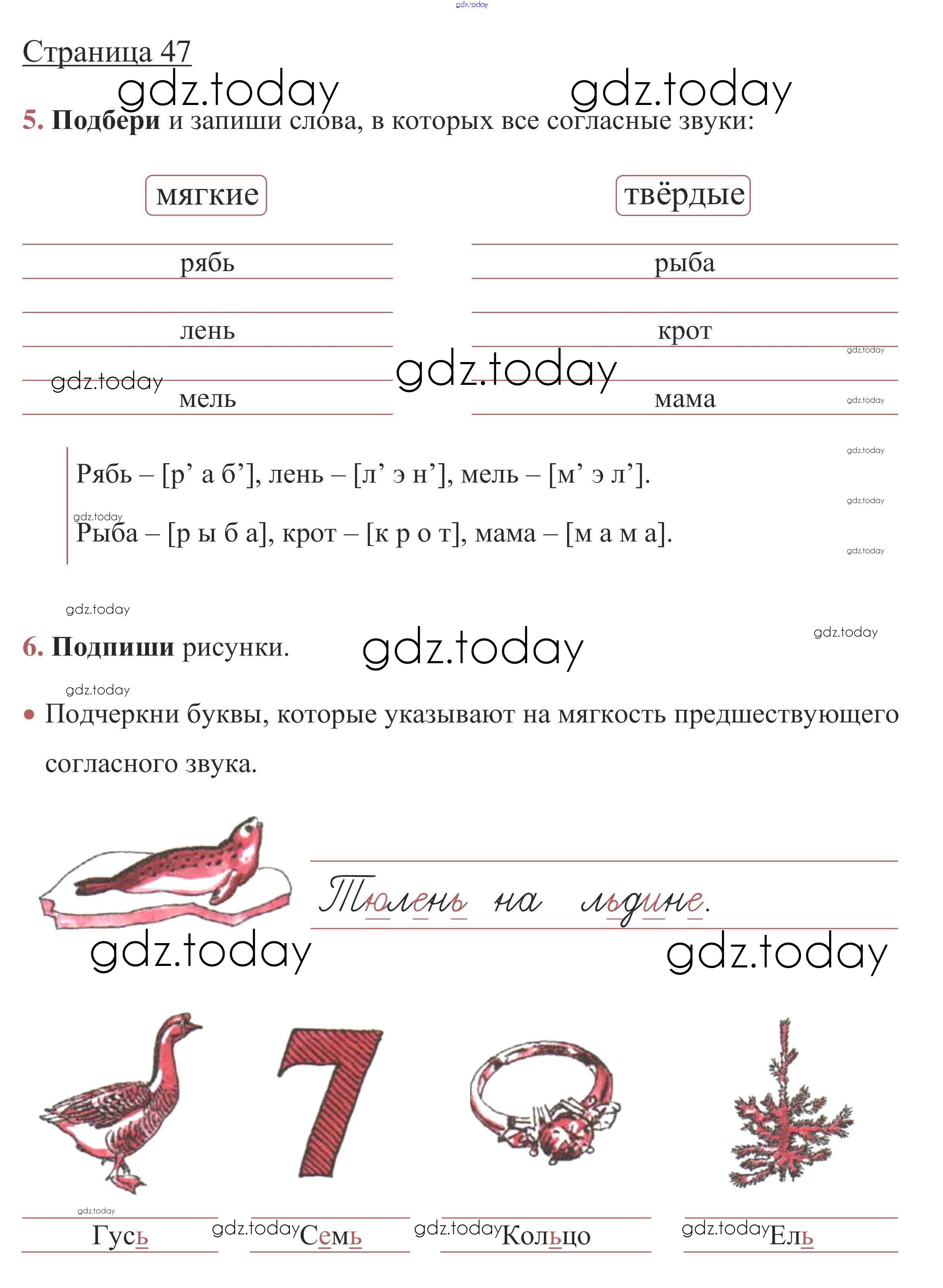 Ответы к Решение. Глава 5. Звуки и буквы  стр. 47 Рабочей тетради по Русскому языку для 1 класса Канакина, Горецкий  Просвещение Школа России 2013