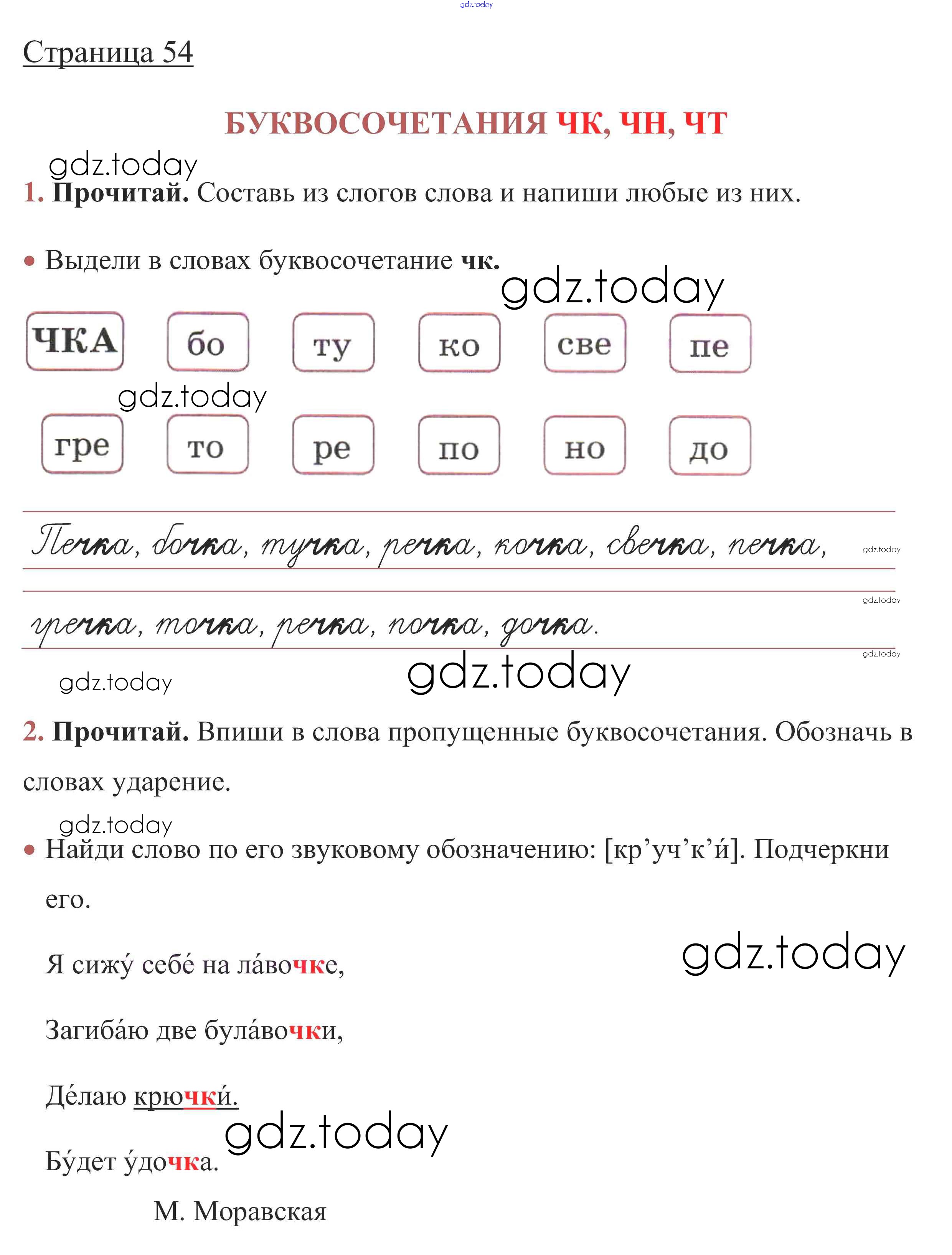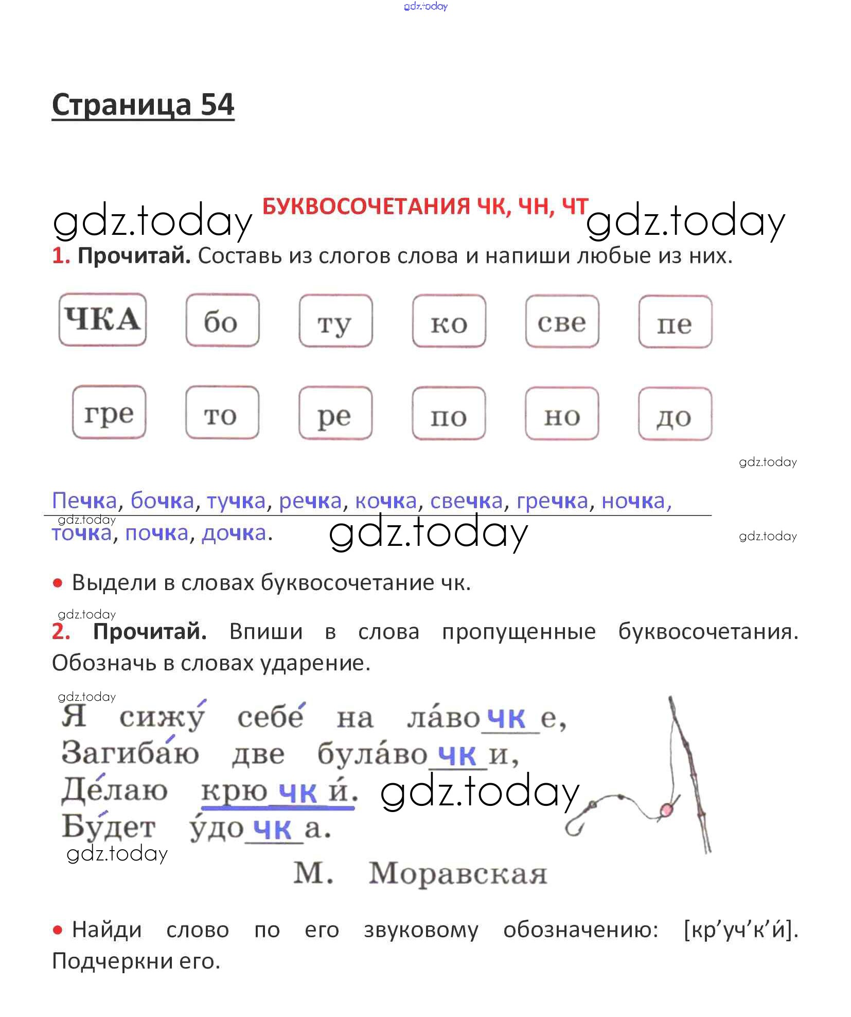 На страницах сайта gdz.today вы найдете учебный и вспомогательный материал, направленный на улучшения знаний школьной программы. ГДЗ - онлайн мир знаний Решение. Глава 5. Звуки и буквы  стр. 54 Рабочей тетради по Русскому языку для 1 класса Канакина, Горецкий  Просвещение Школа России 2013