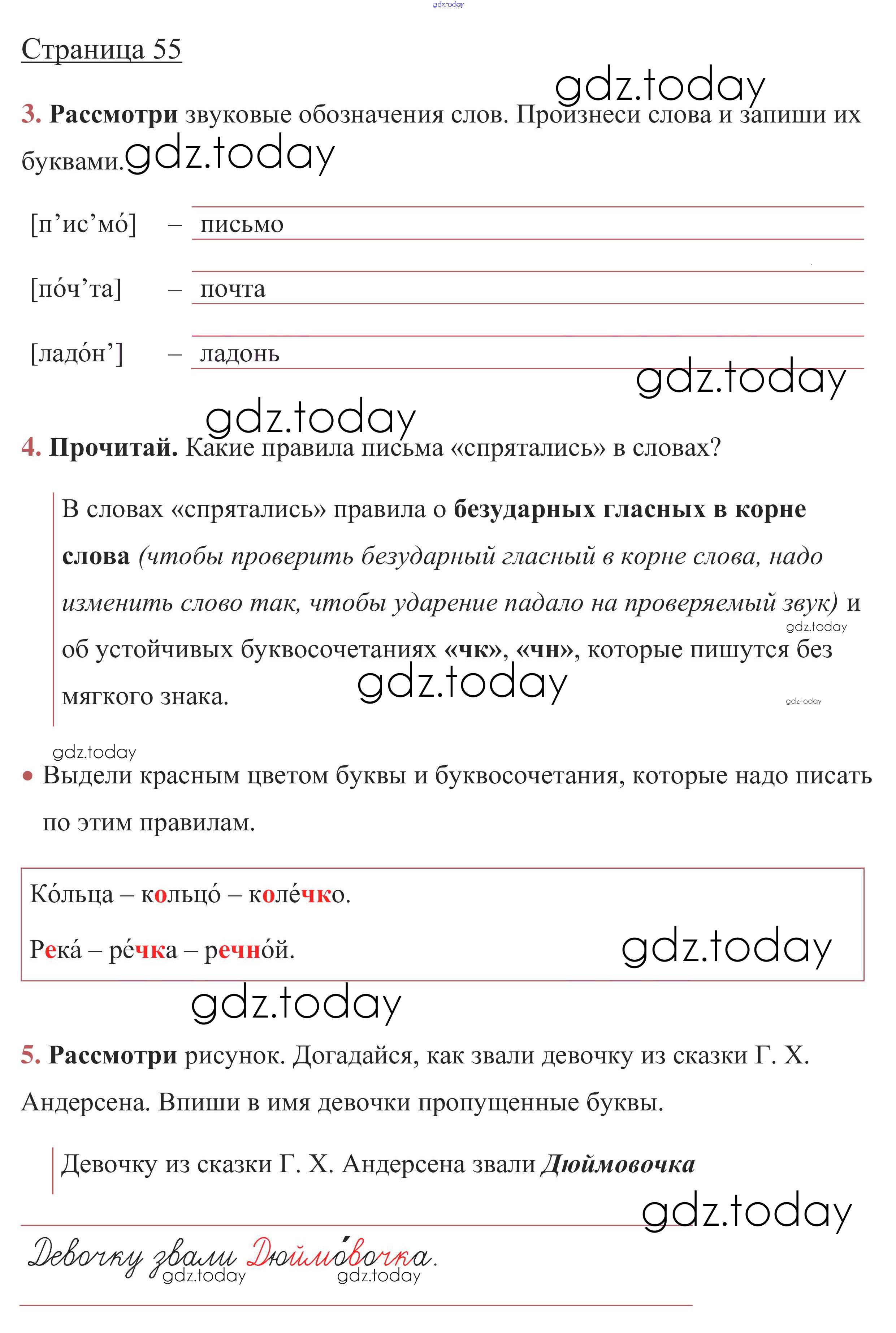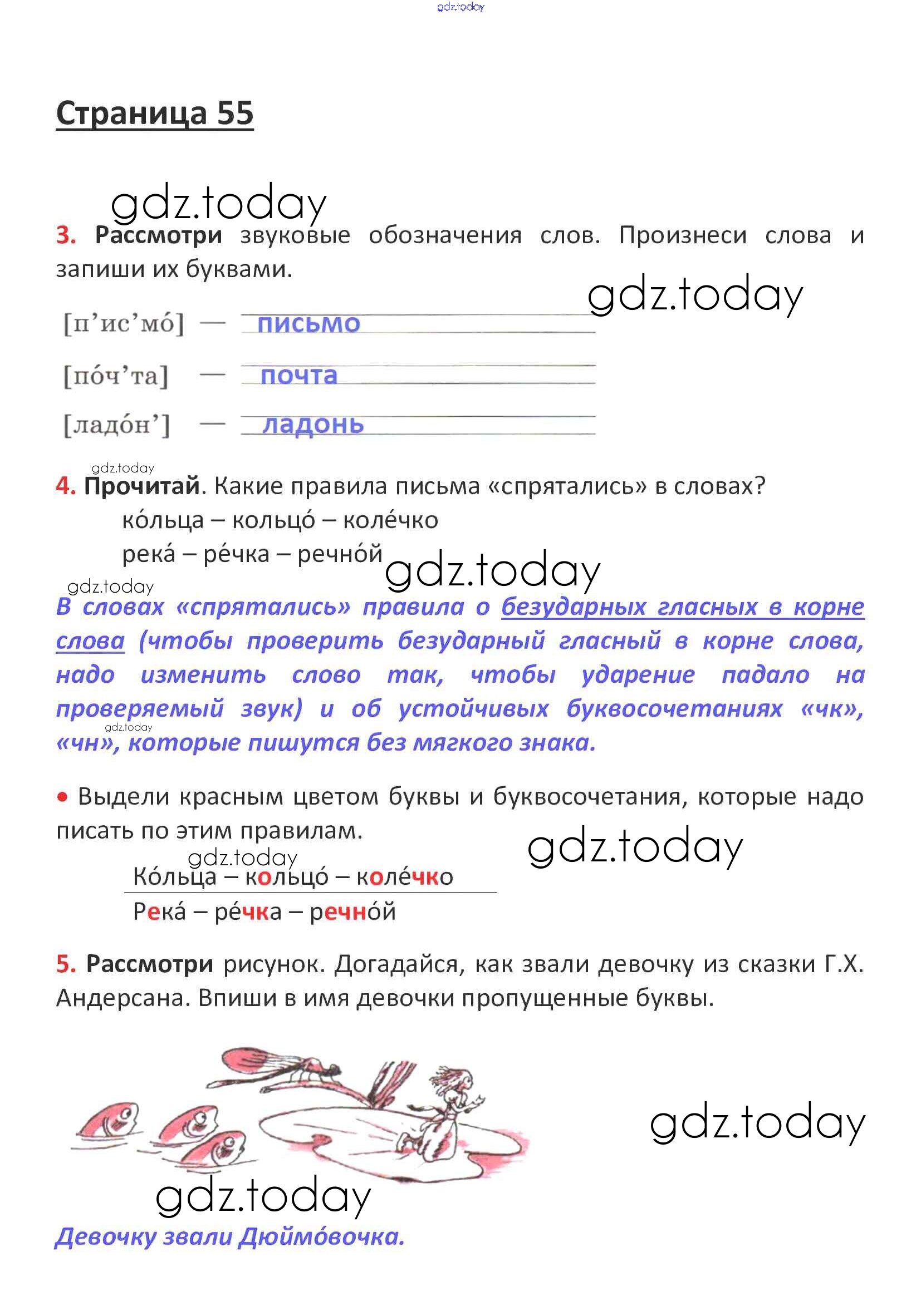 Ответы к Решение. Глава 5. Звуки и буквы  стр. 55 Рабочей тетради по Русскому языку для 1 класса Канакина, Горецкий  Просвещение Школа России 2013