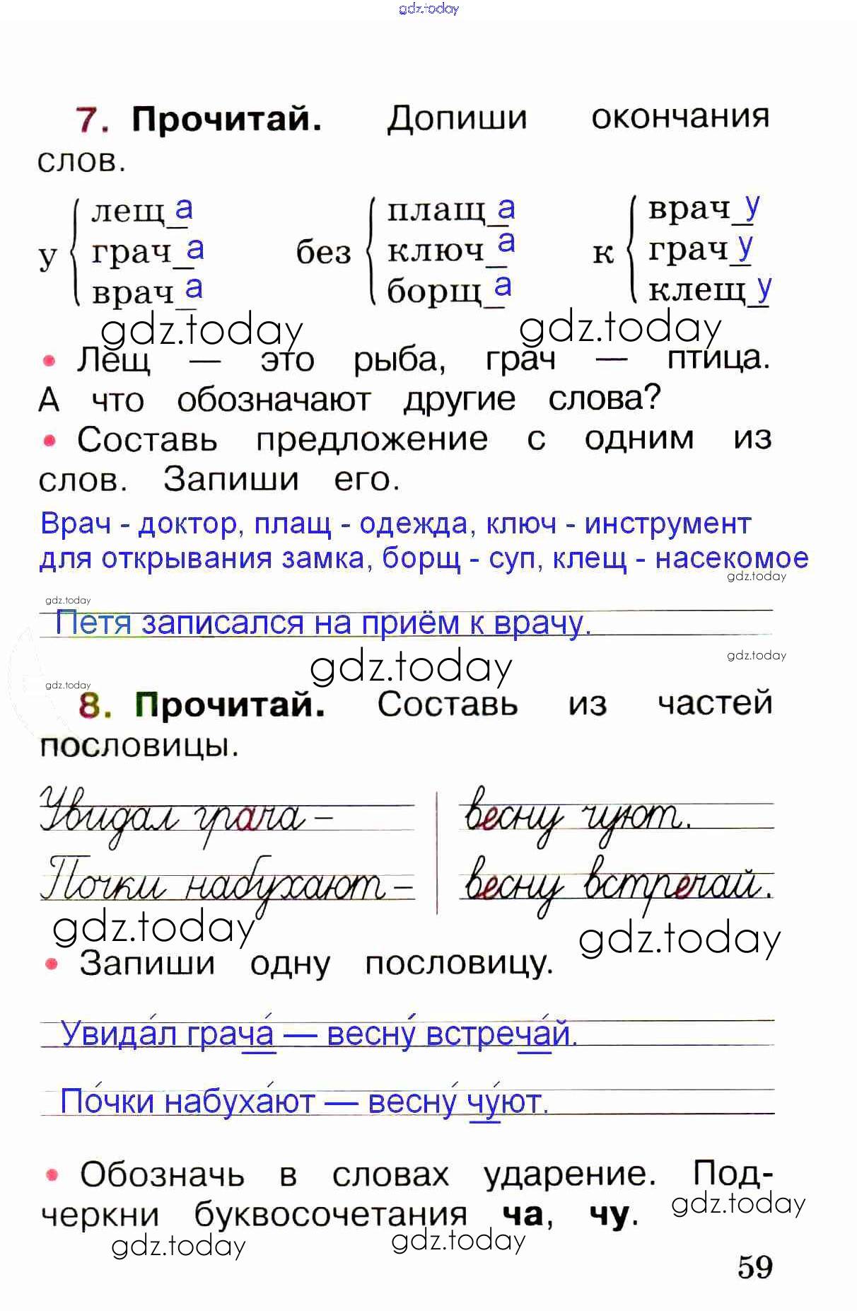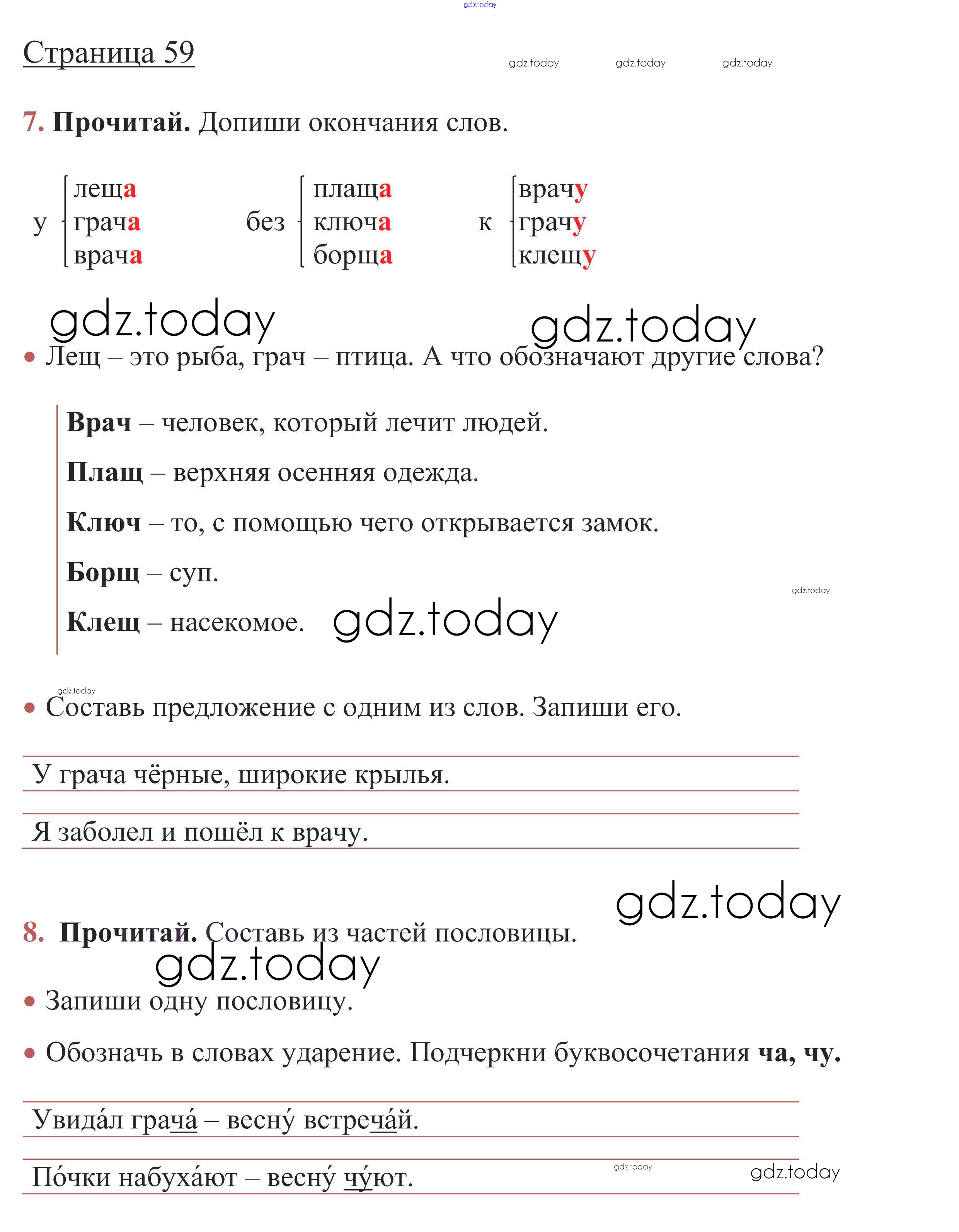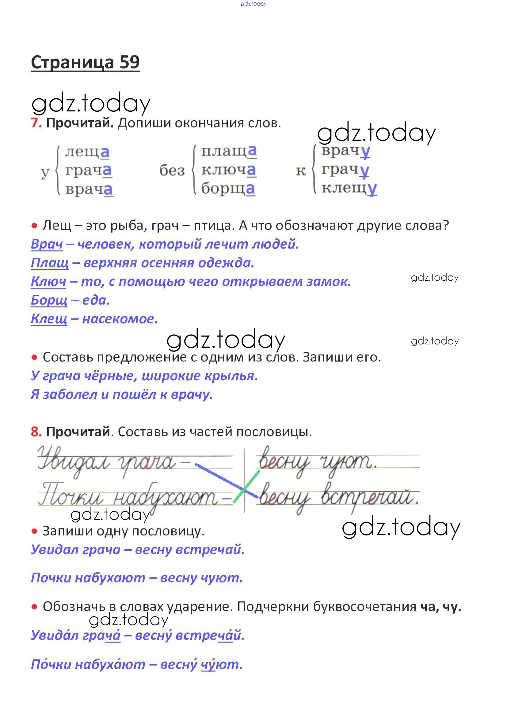 Ответы к Решение. Глава 5. Звуки и буквы  стр. 59 Рабочей тетради по Русскому языку для 1 класса Канакина, Горецкий  Просвещение Школа России 2013