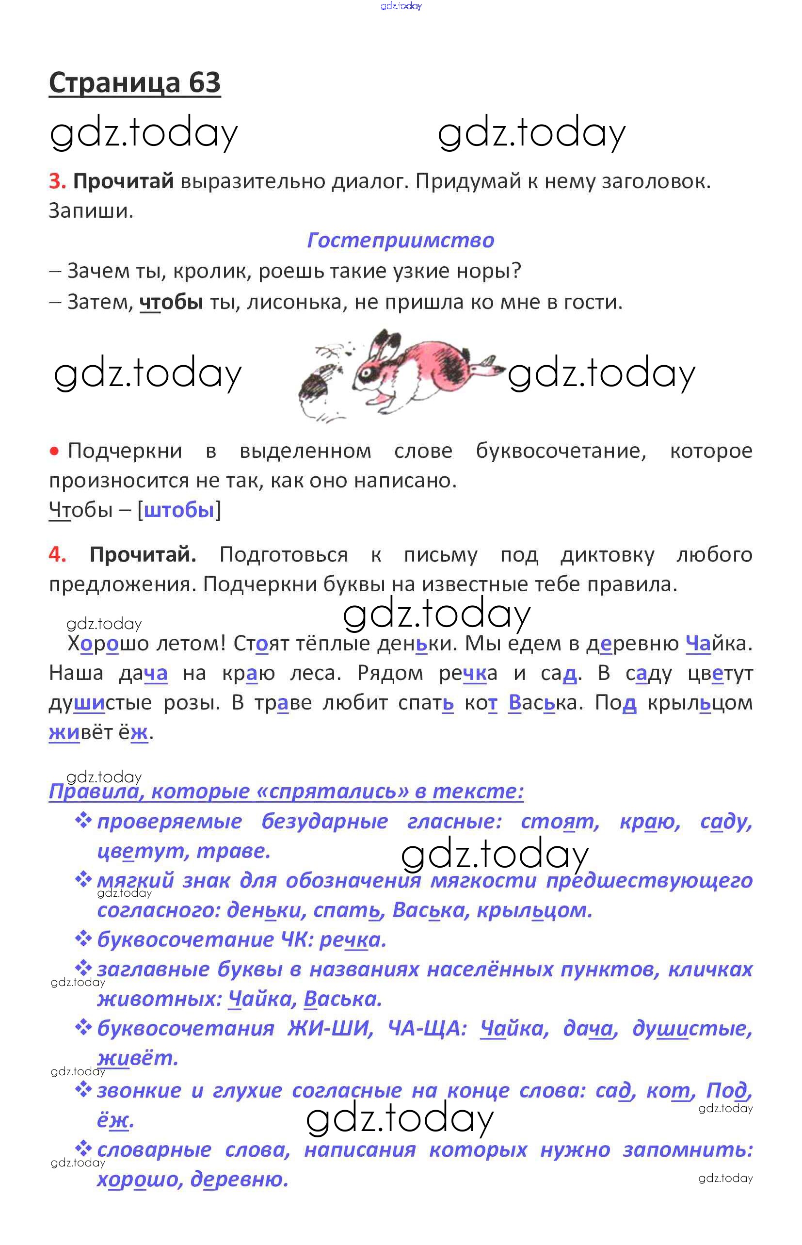 На страницах сайта gdz.today вы найдете учебный и вспомогательный материал, направленный на улучшения знаний школьной программы. ГДЗ - онлайн мир знаний Решение. Повторение  стр. 63 Рабочей тетради по Русскому языку для 1 класса Канакина, Горецкий  Просвещение Школа России 2013
