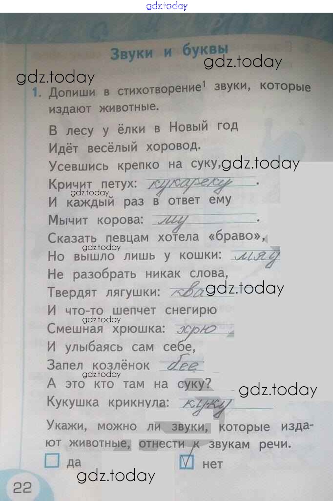 На страницах сайта gdz.today вы найдете учебный и вспомогательный материал, направленный на улучшения знаний школьной программы. ГДЗ - онлайн мир знаний Страницы (решение)  22 Рабочей тетради по Русскому языку для 1 класса Тихомирова  Экзамен УМК 2016