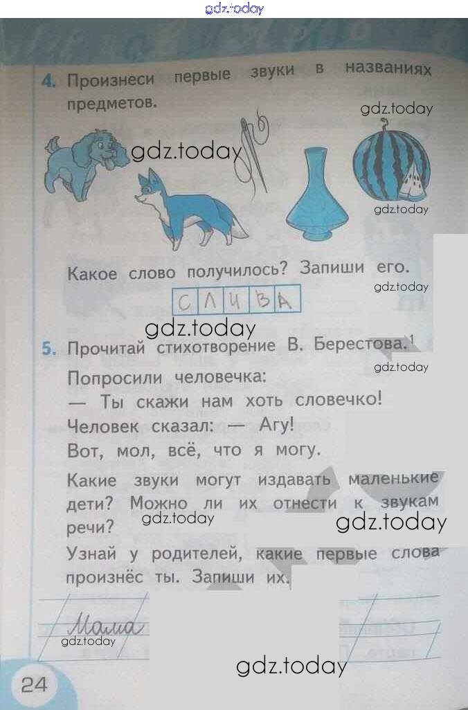 На страницах сайта gdz.today вы найдете учебный и вспомогательный материал, направленный на улучшения знаний школьной программы. ГДЗ - онлайн мир знаний Страницы (решение)  24 Рабочей тетради по Русскому языку для 1 класса Тихомирова  Экзамен УМК 2016