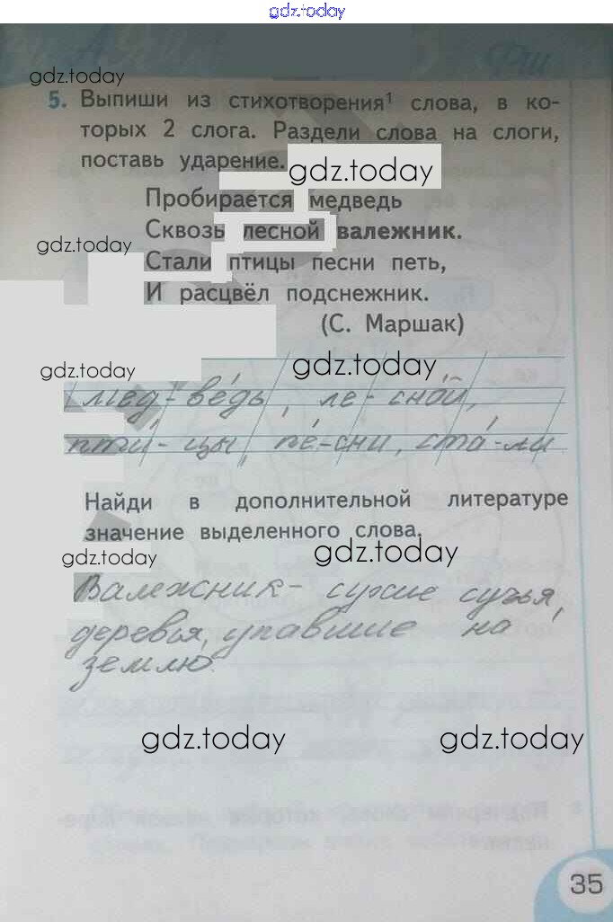 Ответы к Страницы (решение)  35 Рабочей тетради по Русскому языку для 1 класса Тихомирова  Экзамен УМК 2016
