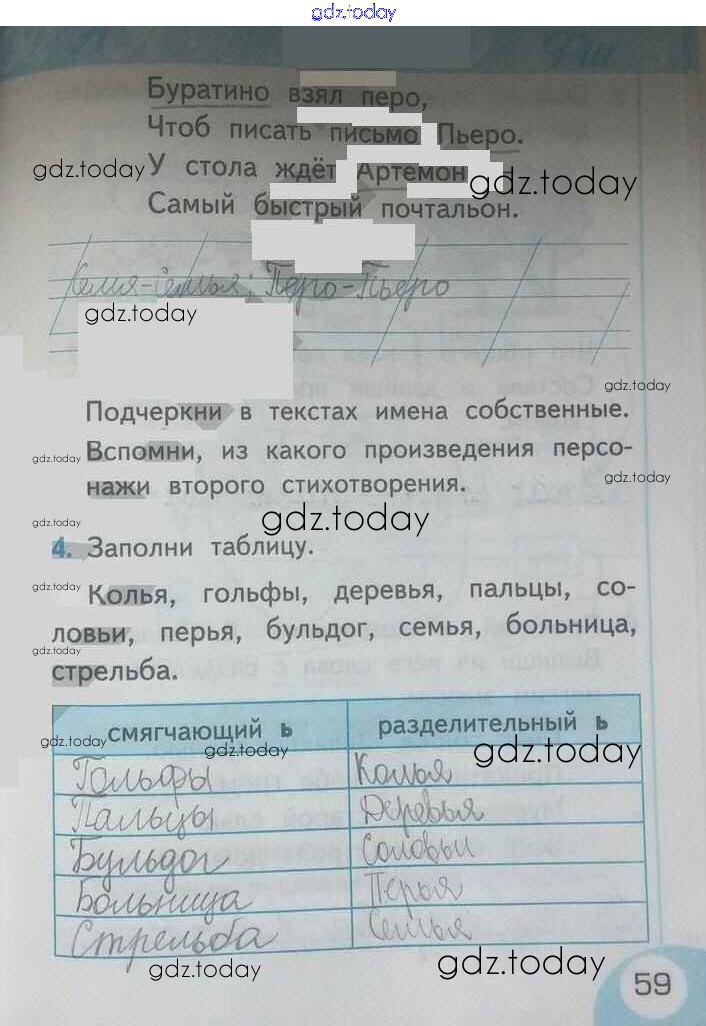 Ответы к Страницы (решение) 59 Рабочей тетради по Русскому языку для 1 класса Тихомирова Экзамен УМК 2016