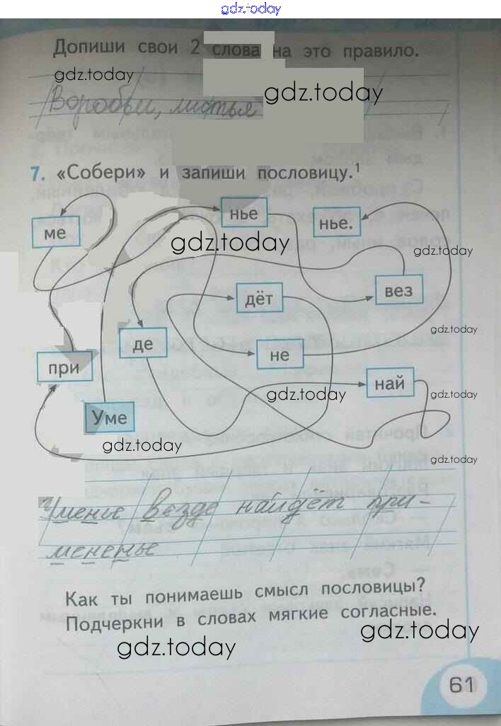 На страницах сайта gdz.today вы найдете учебный и вспомогательный материал, направленный на улучшения знаний школьной программы. ГДЗ - онлайн мир знаний Страницы (решение)  61 Рабочей тетради по Русскому языку для 1 класса Тихомирова  Экзамен УМК 2016