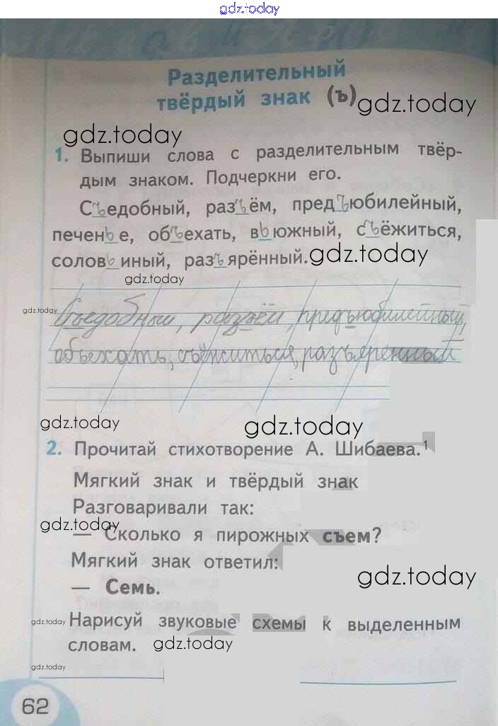 Ответы к Страницы (решение)  62 Рабочей тетради по Русскому языку для 1 класса Тихомирова  Экзамен УМК 2016