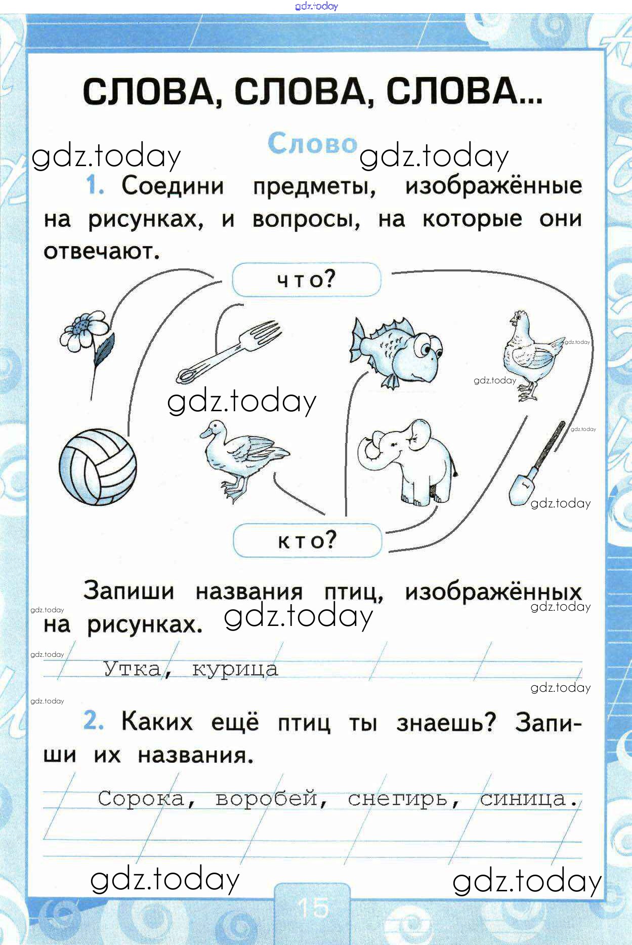 Ответы к Страницы (решение) 15 Рабочей тетради по Русскому языку для 1 класса Тихомирова Экзамен УМК 2016
