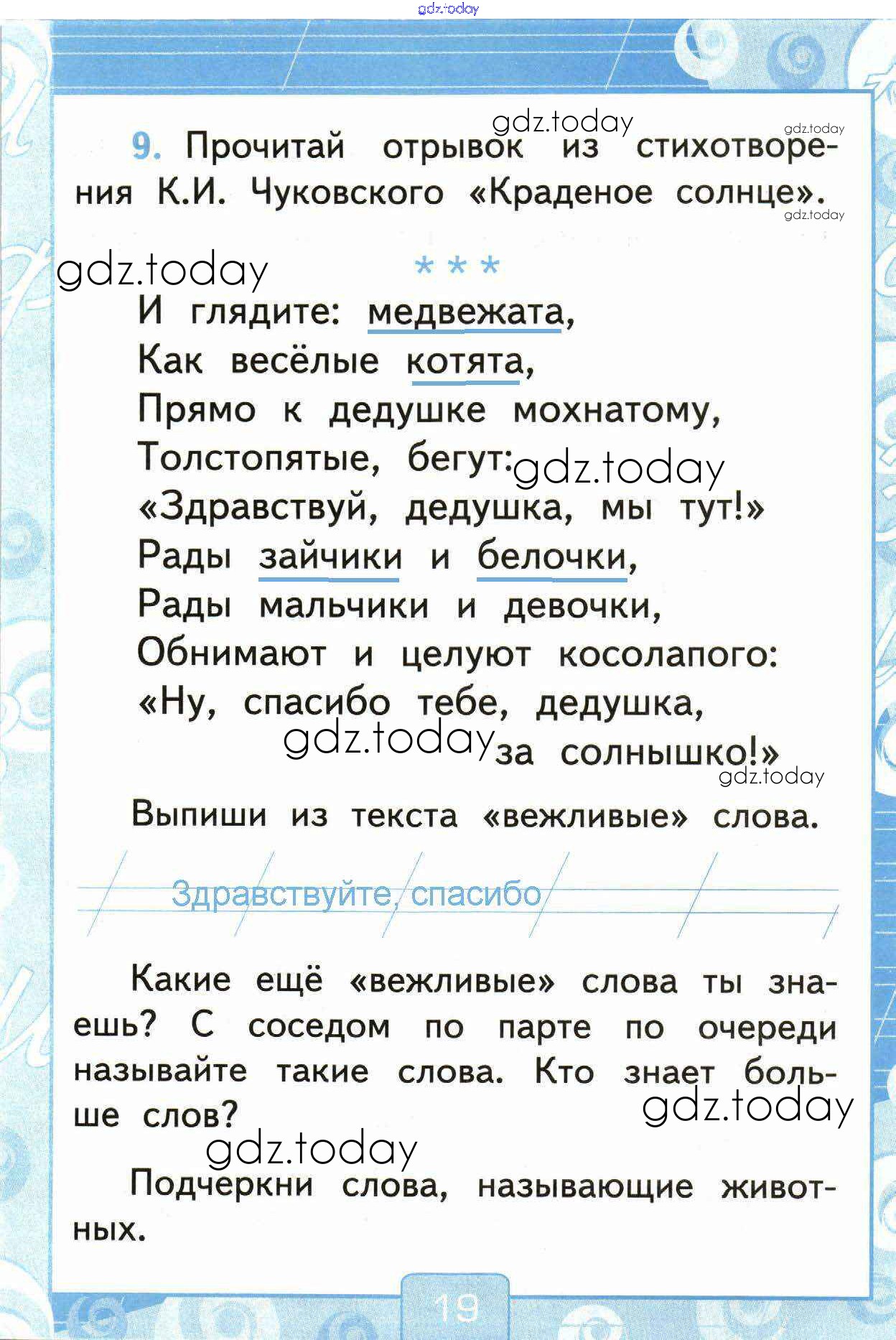 На страницах сайта gdz.today вы найдете учебный и вспомогательный материал, направленный на улучшения знаний школьной программы. ГДЗ - онлайн мир знаний Страницы (решение) 19 Рабочей тетради по Русскому языку для 1 класса Тихомирова Экзамен УМК 2016