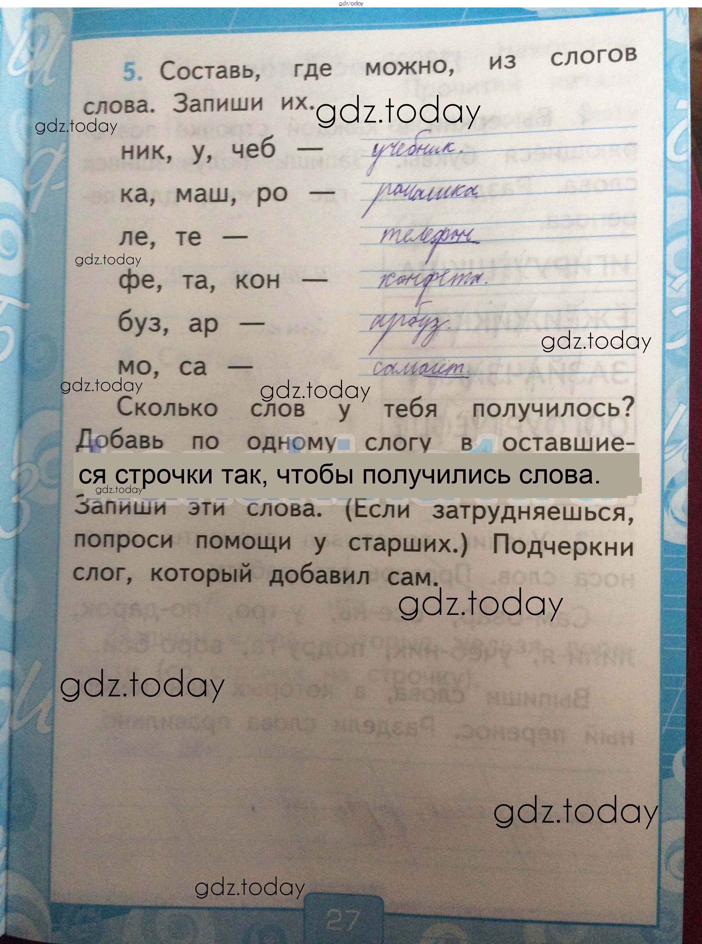 На страницах сайта gdz.today вы найдете учебный и вспомогательный материал, направленный на улучшения знаний школьной программы. ГДЗ - онлайн мир знаний Страницы (решение) 27 Рабочей тетради по Русскому языку для 1 класса Тихомирова Экзамен УМК 2016
