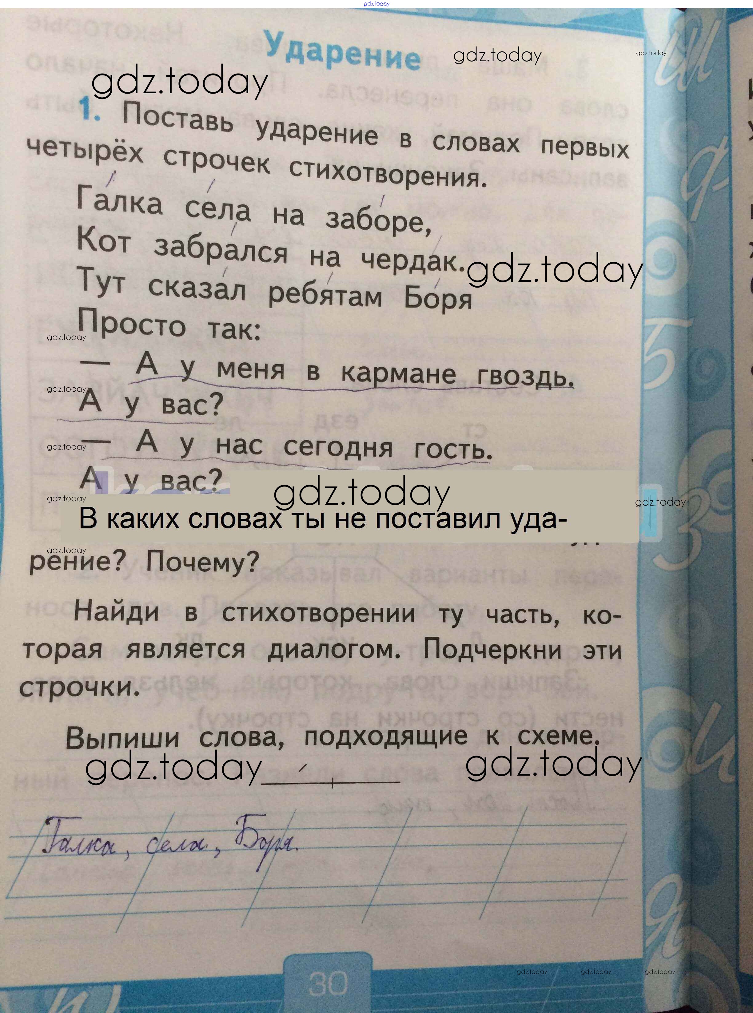 На страницах сайта gdz.today вы найдете учебный и вспомогательный материал, направленный на улучшения знаний школьной программы. ГДЗ - онлайн мир знаний Страницы (решение) 30 Рабочей тетради по Русскому языку для 1 класса Тихомирова Экзамен УМК 2016