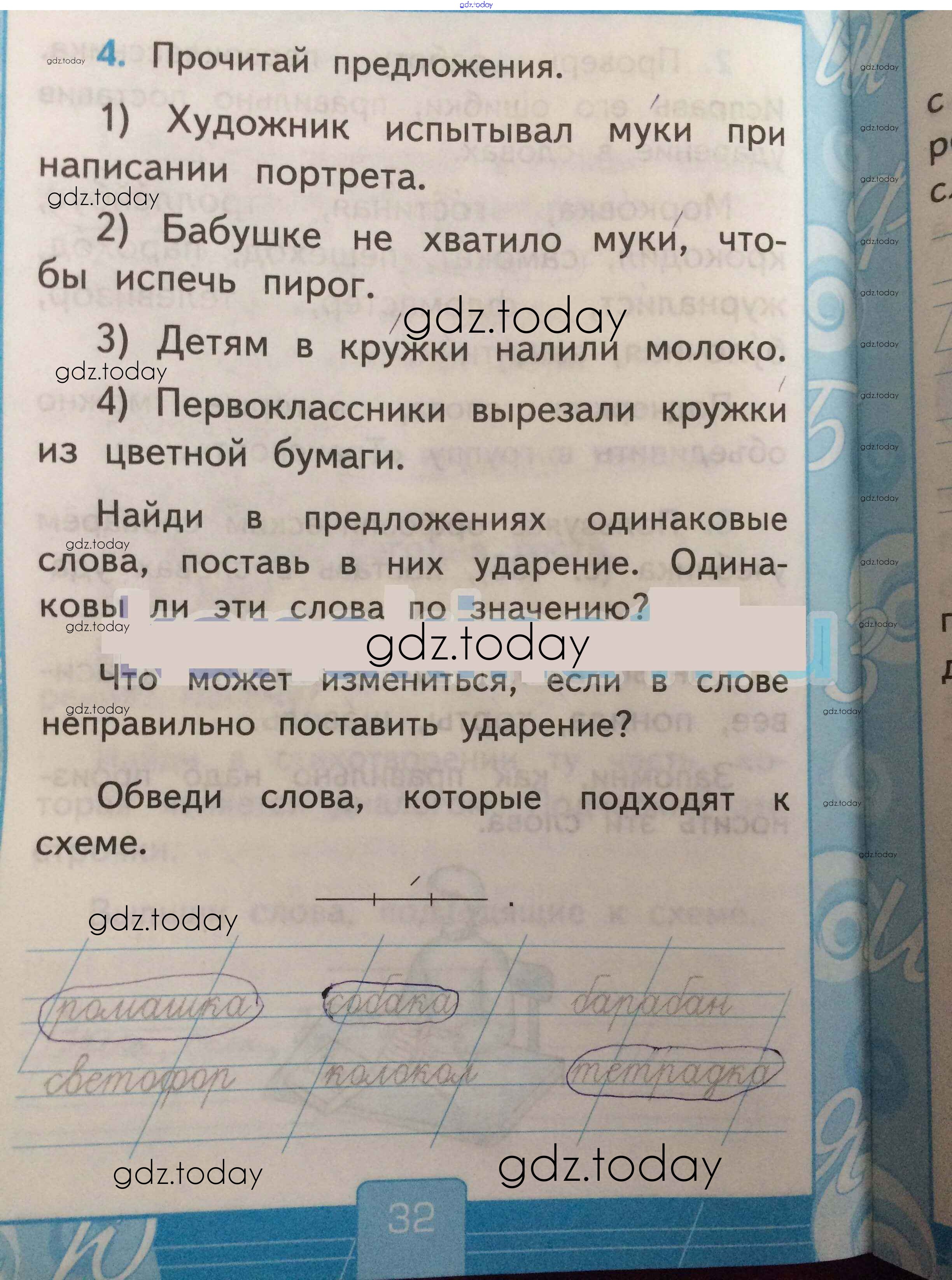На страницах сайта gdz.today вы найдете учебный и вспомогательный материал, направленный на улучшения знаний школьной программы. ГДЗ - онлайн мир знаний Страницы (решение) 32 Рабочей тетради по Русскому языку для 1 класса Тихомирова Экзамен УМК 2016