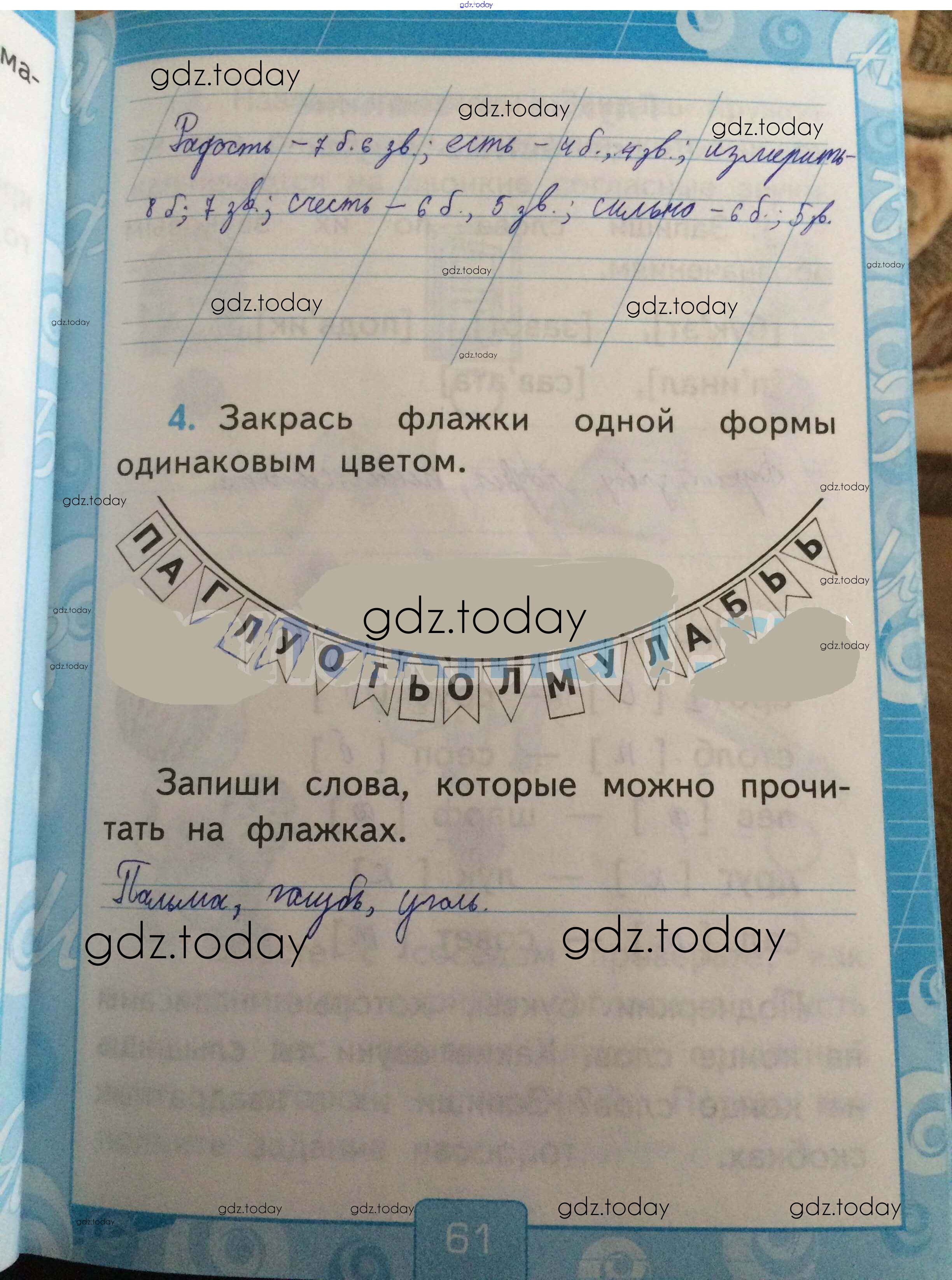 Ответы к Страницы (решение) 61 Рабочей тетради по Русскому языку для 1 класса Тихомирова Экзамен УМК 2016