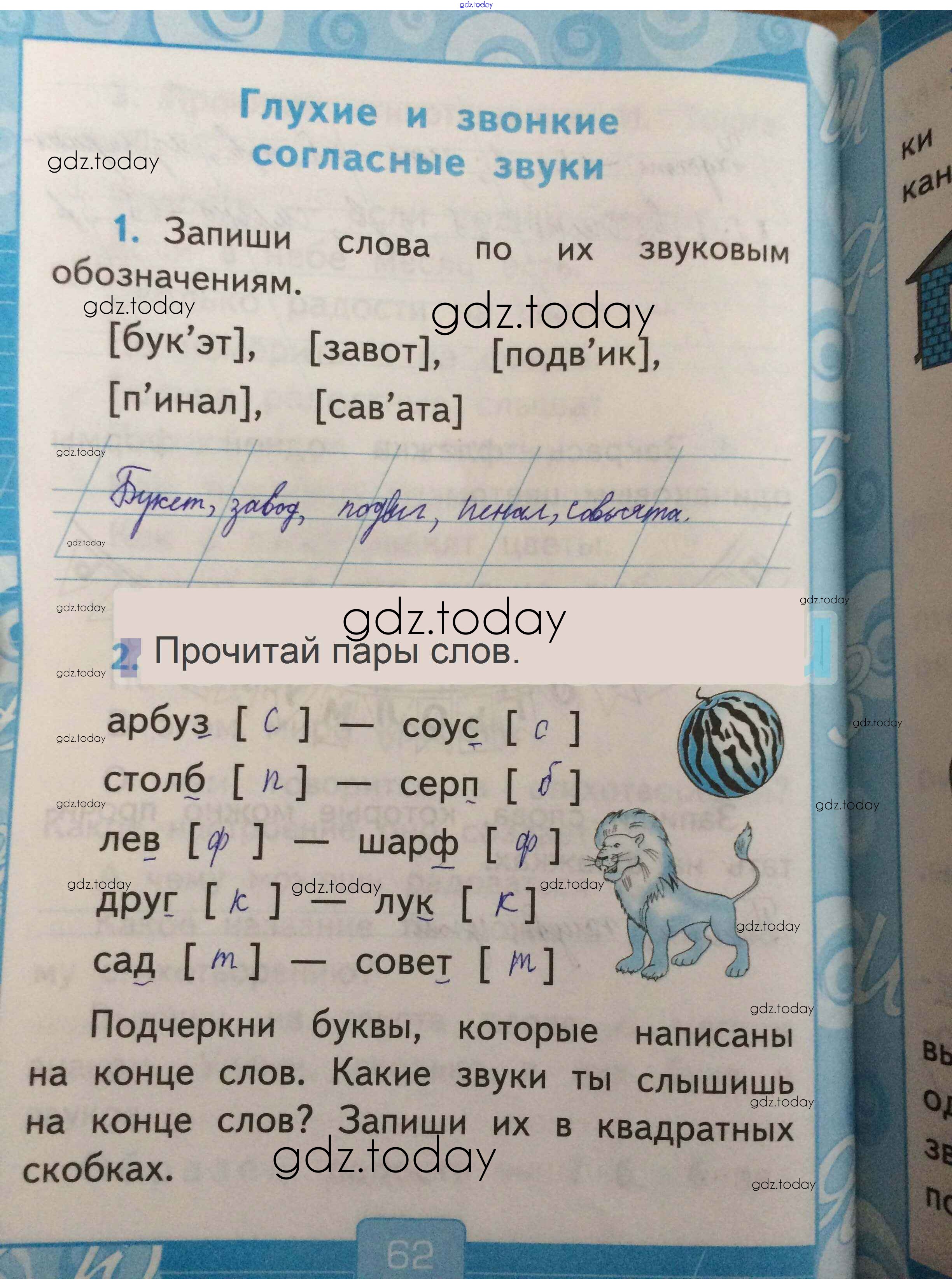 Ответы к Страницы (решение) 62 Рабочей тетради по Русскому языку для 1 класса Тихомирова Экзамен УМК 2016