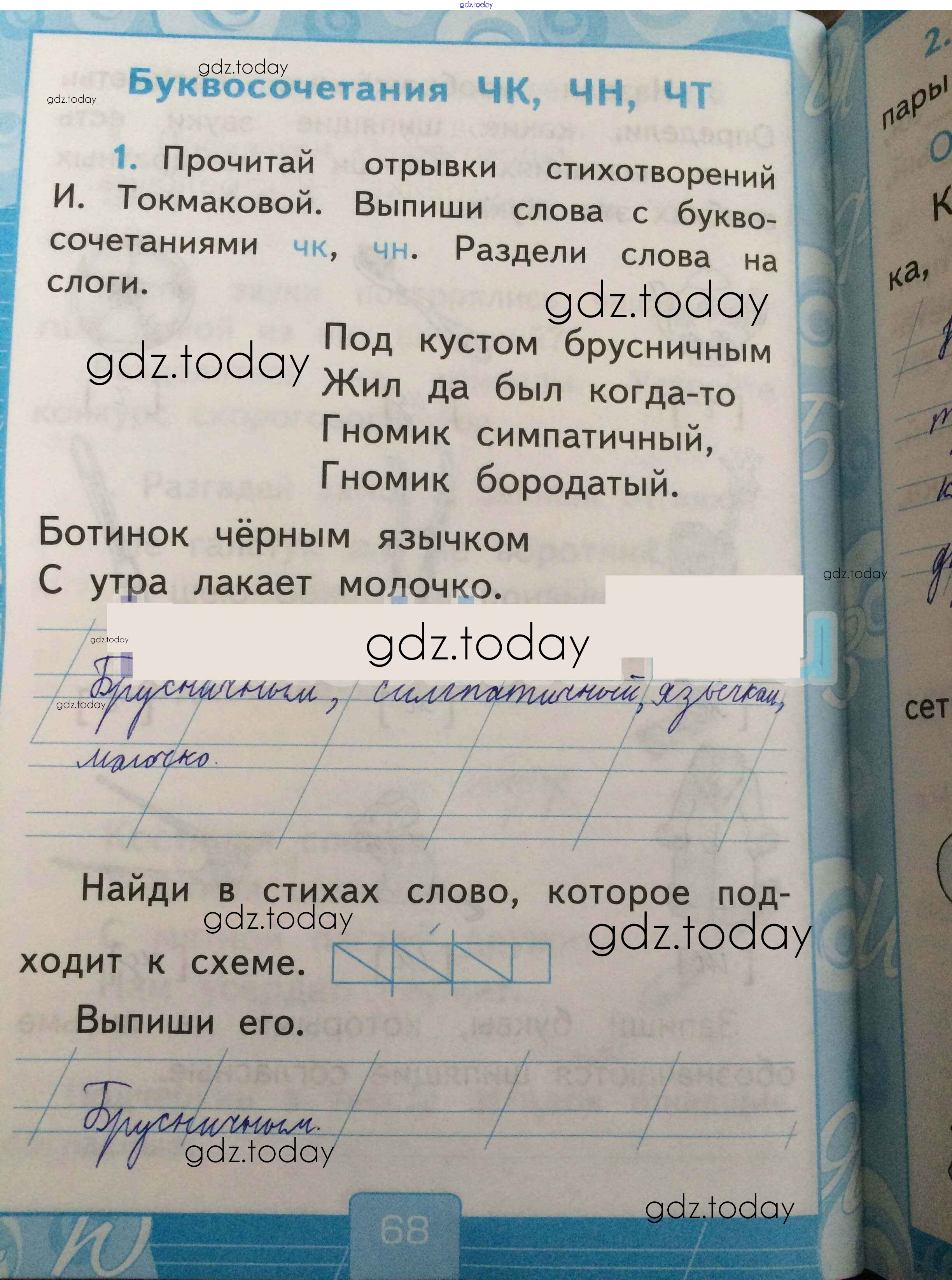 На страницах сайта gdz.today вы найдете учебный и вспомогательный материал, направленный на улучшения знаний школьной программы. ГДЗ - онлайн мир знаний Страницы (решение) 68 Рабочей тетради по Русскому языку для 1 класса Тихомирова Экзамен УМК 2016