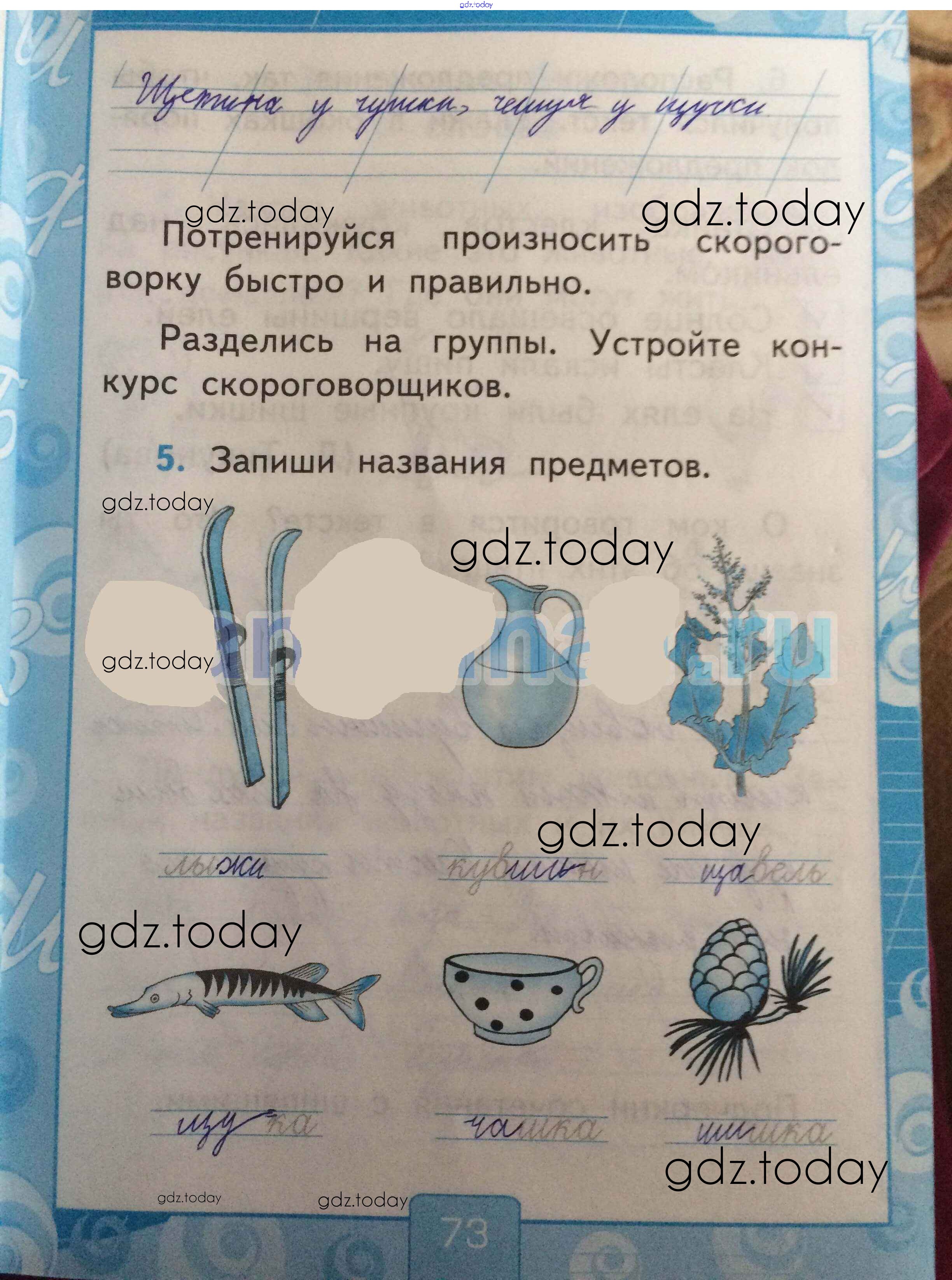 Ответы к Страницы (решение) 73 Рабочей тетради по Русскому языку для 1 класса Тихомирова Экзамен УМК 2016