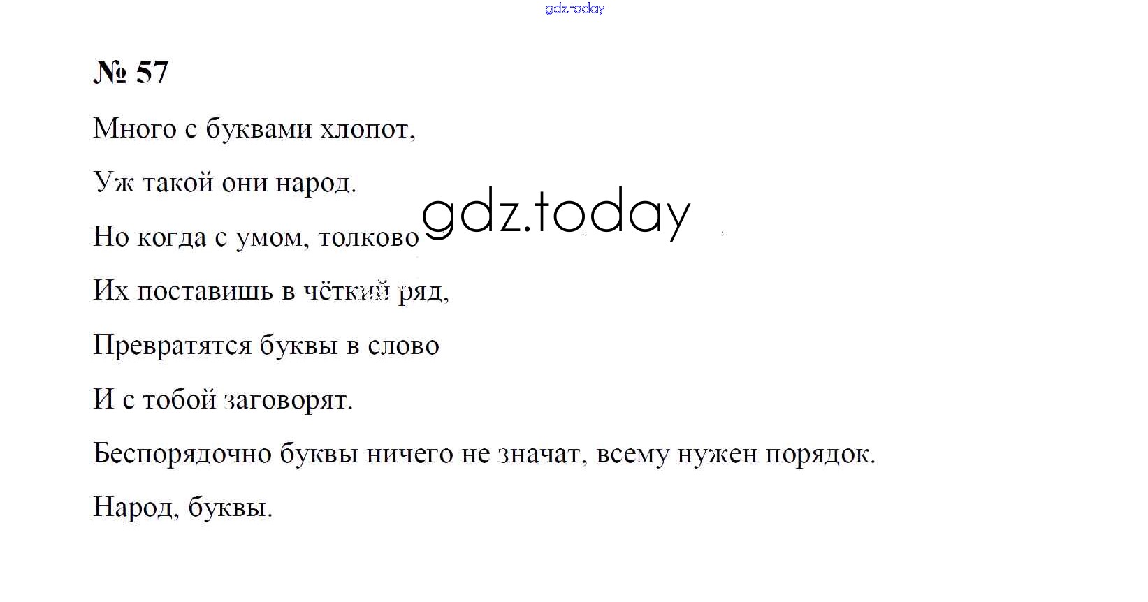 На страницах сайта gdz.today вы найдете учебный и вспомогательный материал, направленный на улучшения знаний школьной программы. ГДЗ - онлайн мир знаний Решение к упражнениям 57 Рабочей тетради по Русскому языку для 1 класса Рамзаева, Савинкина Просвещение 2019