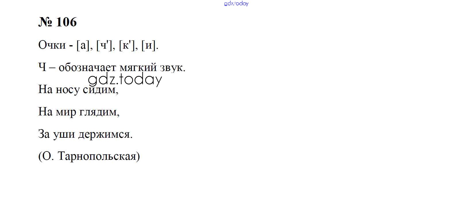 Ответы к Решение к упражнениям 106 Учебнику по Русскому языку для 1 класса Рамзаева Дрофа 2014