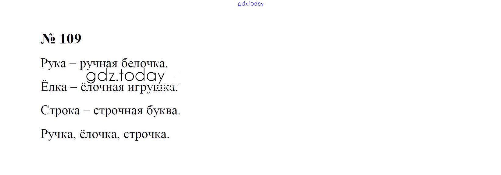 Ответы к Решение к упражнениям 109 Учебнику по Русскому языку для 1 класса Рамзаева Дрофа 2014