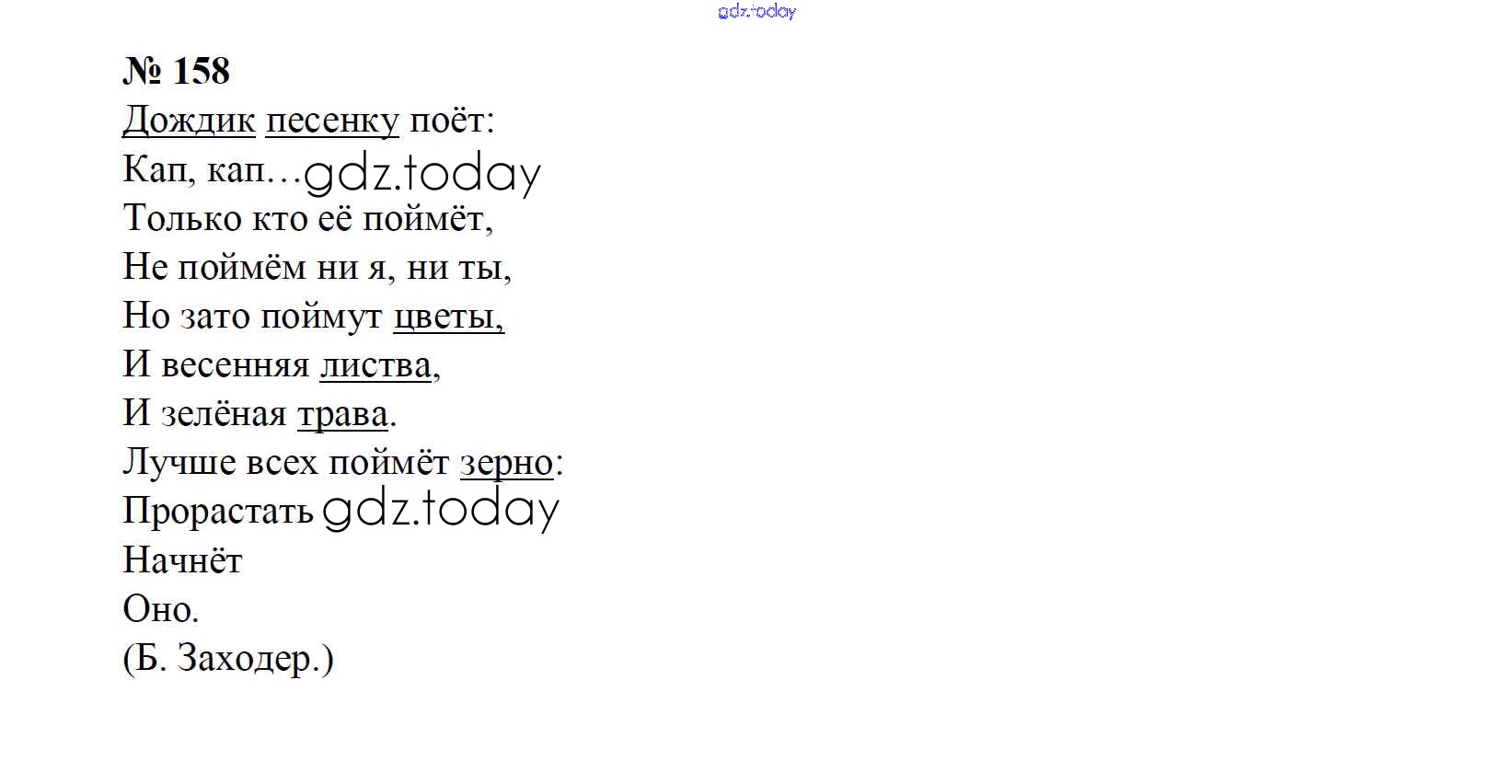На страницах сайта gdz.today вы найдете учебный и вспомогательный материал, направленный на улучшения знаний школьной программы. ГДЗ - онлайн мир знаний Решение к упражнениям 158 Учебнику по Русскому языку для 1 класса Рамзаева Дрофа 2014