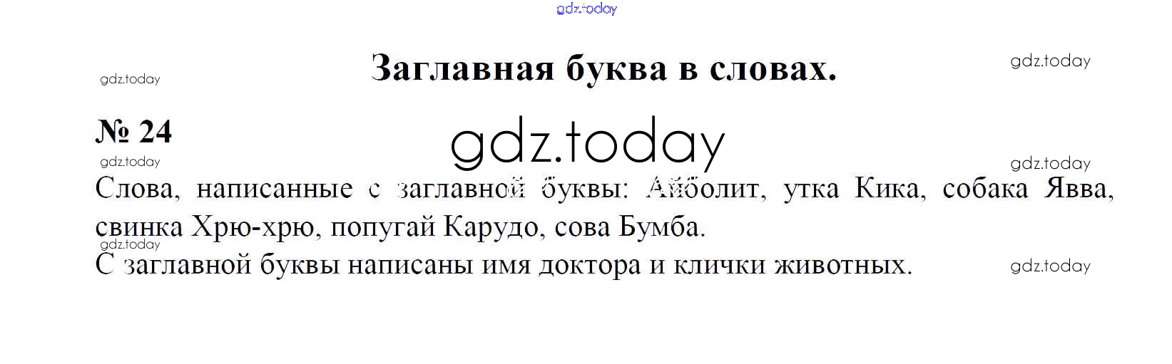 На страницах сайта gdz.today вы найдете учебный и вспомогательный материал, направленный на улучшения знаний школьной программы. ГДЗ - онлайн мир знаний Решение к упражнениям 24 Учебнику по Русскому языку для 1 класса Рамзаева Дрофа 2014