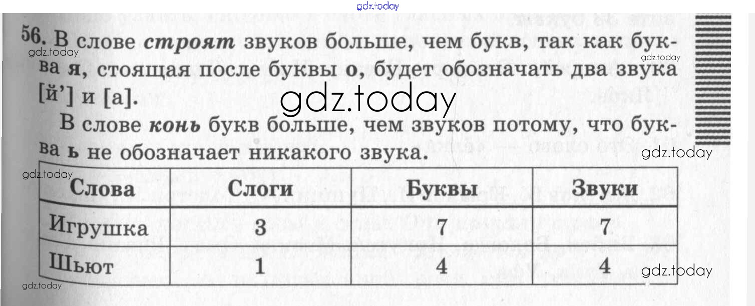 Ответы к Решение к упражнениям 56 Учебнику по Русскому языку для 1 класса Рамзаева Дрофа 2014