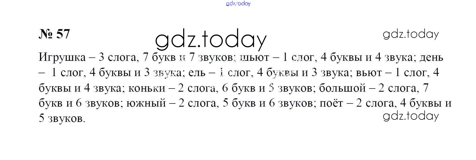 На страницах сайта gdz.today вы найдете учебный и вспомогательный материал, направленный на улучшения знаний школьной программы. ГДЗ - онлайн мир знаний Решение к упражнениям 57 Учебнику по Русскому языку для 1 класса Рамзаева Дрофа 2014