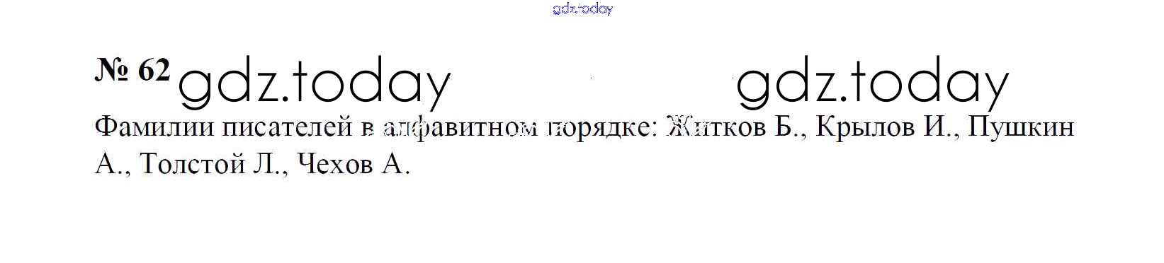 Ответы к Решение к упражнениям 62 Учебнику по Русскому языку для 1 класса Рамзаева Дрофа 2014