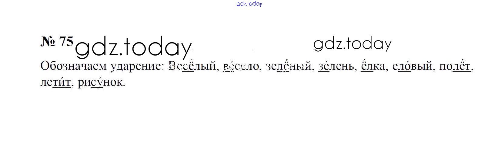 На страницах сайта gdz.today вы найдете учебный и вспомогательный материал, направленный на улучшения знаний школьной программы. ГДЗ - онлайн мир знаний Решение к упражнениям 75 Учебнику по Русскому языку для 1 класса Рамзаева Дрофа 2014