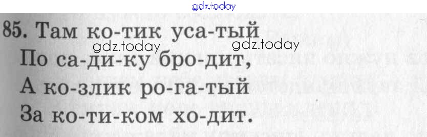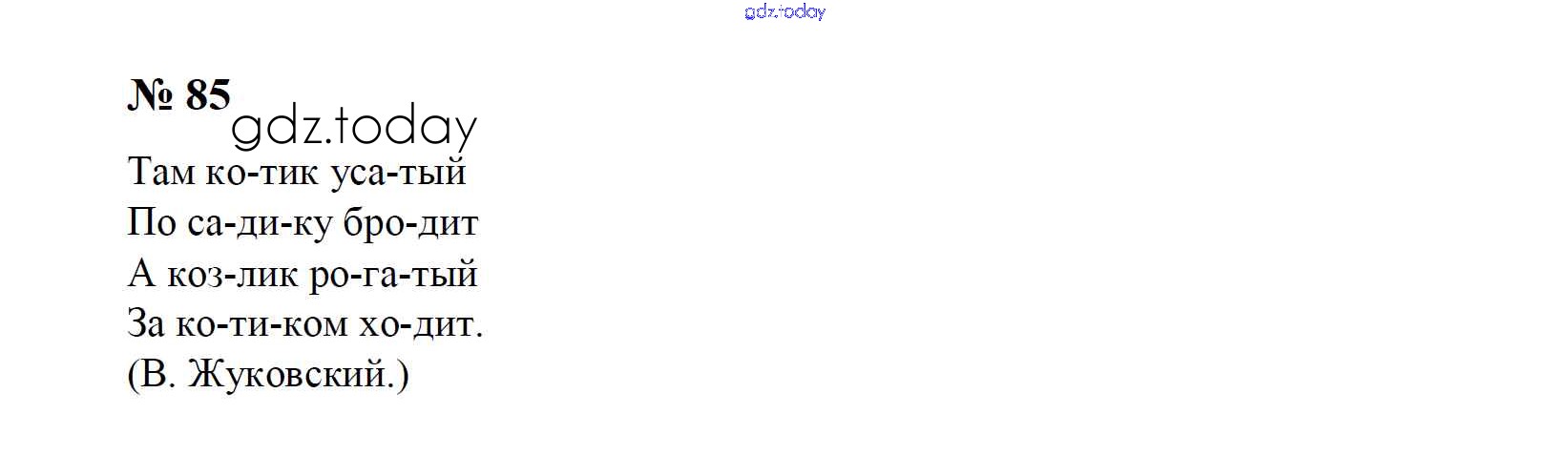 На страницах сайта gdz.today вы найдете учебный и вспомогательный материал, направленный на улучшения знаний школьной программы. ГДЗ - онлайн мир знаний Решение к упражнениям 85 Учебнику по Русскому языку для 1 класса Рамзаева Дрофа 2014