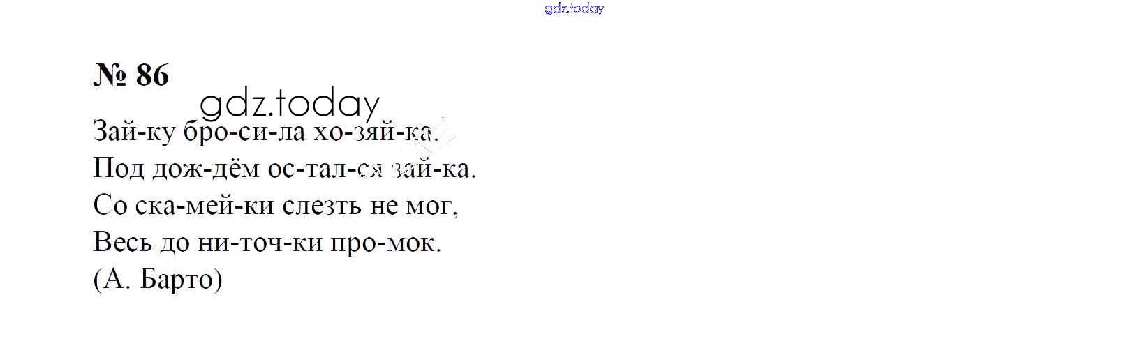 На страницах сайта gdz.today вы найдете учебный и вспомогательный материал, направленный на улучшения знаний школьной программы. ГДЗ - онлайн мир знаний Решение к упражнениям 86 Учебнику по Русскому языку для 1 класса Рамзаева Дрофа 2014
