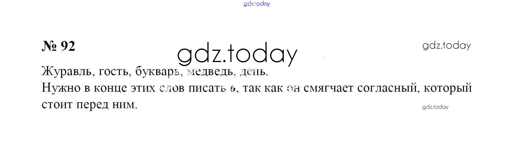 На страницах сайта gdz.today вы найдете учебный и вспомогательный материал, направленный на улучшения знаний школьной программы. ГДЗ - онлайн мир знаний Решение к упражнениям 92 Учебнику по Русскому языку для 1 класса Рамзаева Дрофа 2014