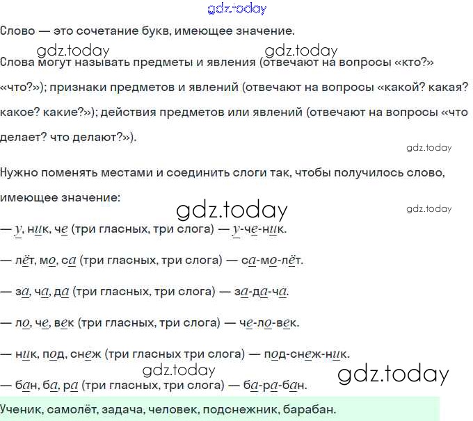 На страницах сайта gdz.today вы найдете учебный и вспомогательный материал, направленный на улучшения знаний школьной программы. ГДЗ - онлайн мир знаний Решение. Слово и слог. Перенос слов. Ударение 1 Тренажёру по Русскому языку для 1 класса Тихомирова Экзамен Тренажёр 2022